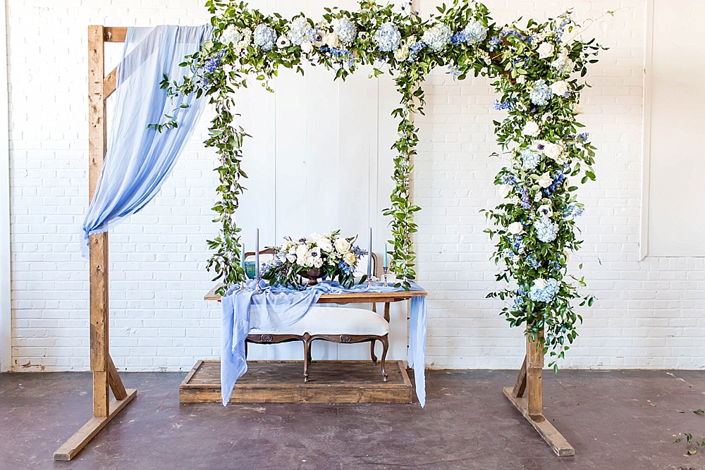 We love it when cool creatives workshop in our space at #highpointandmoore! Our talented friend Hope Taylor has held a couple fun and interactive photography workshops in our space and one of our favorite things about them is watching each of the unique styled shoots come together! This time around a team of talented vendors was able to create stunning a stunning design that featured blue and white wedding inspiration with a touch of French influence! We know you’ll enjoy scrolling through the beautiful images below captured during the HTP Workshop!