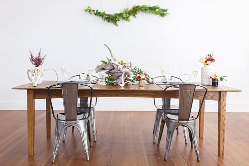 This modern industrial styled shoot is featured on Ruffled today! We were thrilled to be a part of this shoot with Virginia Photographer, Katie Nesbitt Photography, and planner Dear Sweetheart Events held at one of our favorite Charlottesville venues, Old Metropolitan Hall. This shoot is a refreshing change take on simple clean lines with pops of color and texture with the driftwood and antlers. Our modern end tables pulled together made a charming cake display. Enjoy!
