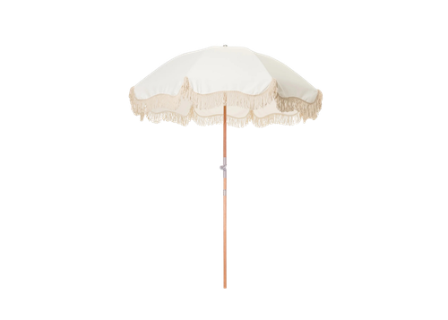White Fringe Umbrellas paired with White Wilhelm Cocktail Tables