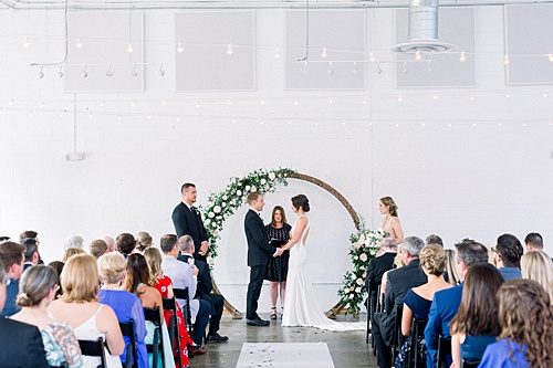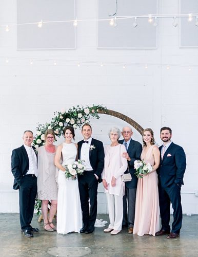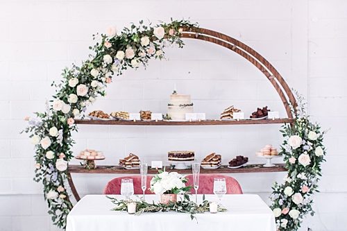 We love the fresh & modern pop of Christina & Aaron’s Studio Two Three Wedding summer wedding! The couple utilized the Round Wooden Arbor for there ceremony against the venue’s wonderful white backdrop along with Amanda Burnette’s amazing floral magic! Check out below where the couple repurposed the arbor with shelves their epic dessert display! Enjoy these images below from Bri & Wes Photography of this beautifully planned wedding by The Hive Wedding Collective!