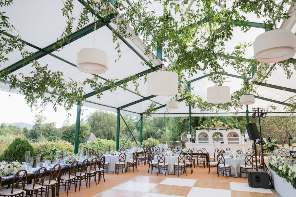 If you’re saying “I do” under the sky, tents, flooring, sidewalls, and lightning become essential pieces of the puzzle.