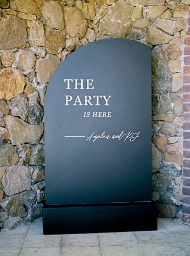 We love a good directional sign:) Angelica and KJ spelled it out for their guests for their Spring wedding celebration at Dover Hall with Elle Loren & Co! Guests entered the property greeted by the Short Rounded Black Panel & Base with White Vinyl Lettering. Find out more about our vinyl services here!