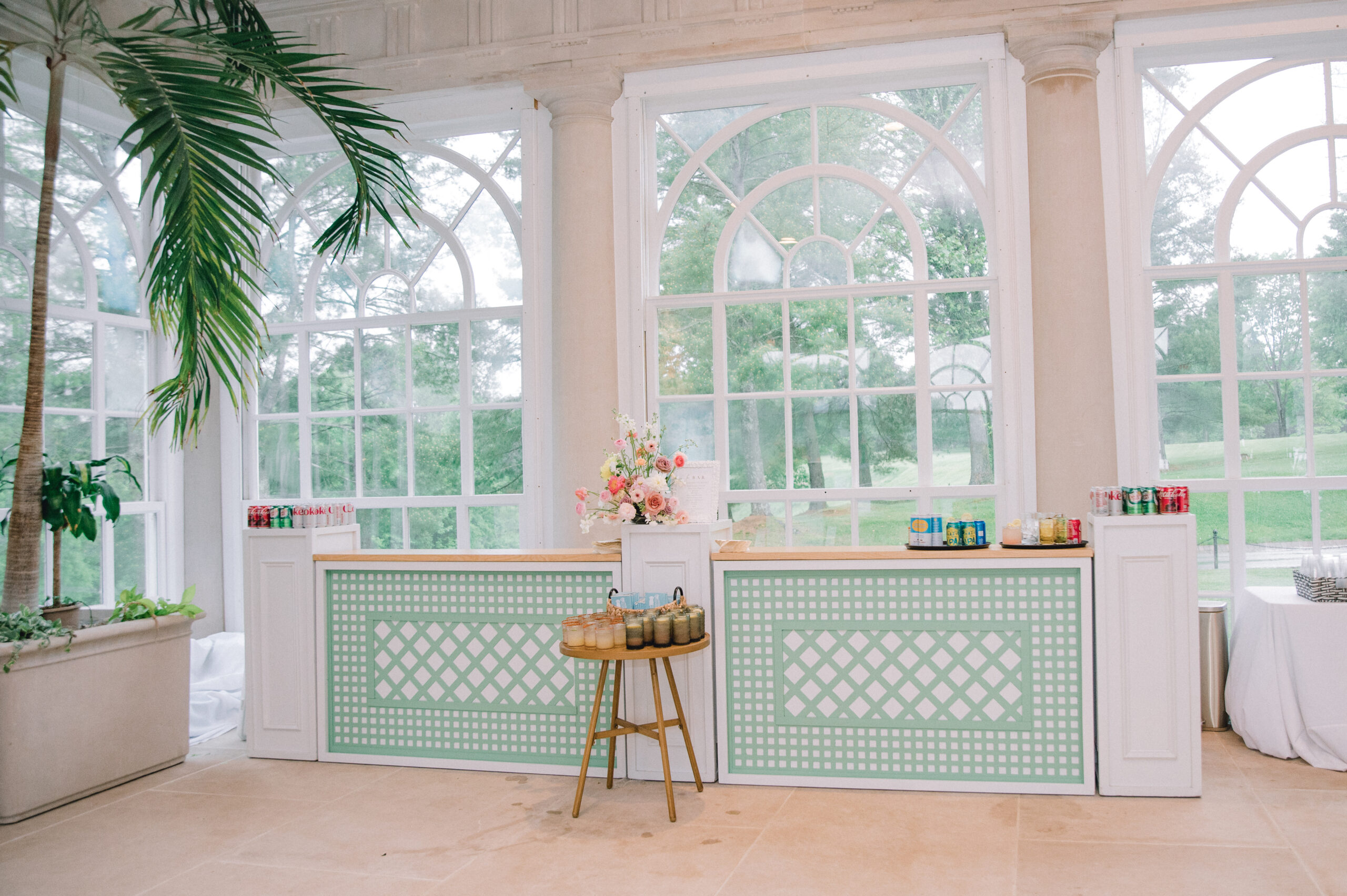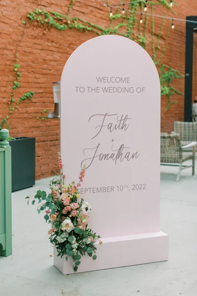 Display moments are often a guest’s first interaction with the reception space. When elevated through architectural structures, layered textures, or custom styling, they set the tone for what’s to come and immediately immerse guests in the design story. And what says “Welcome” more than sage lattice, right?