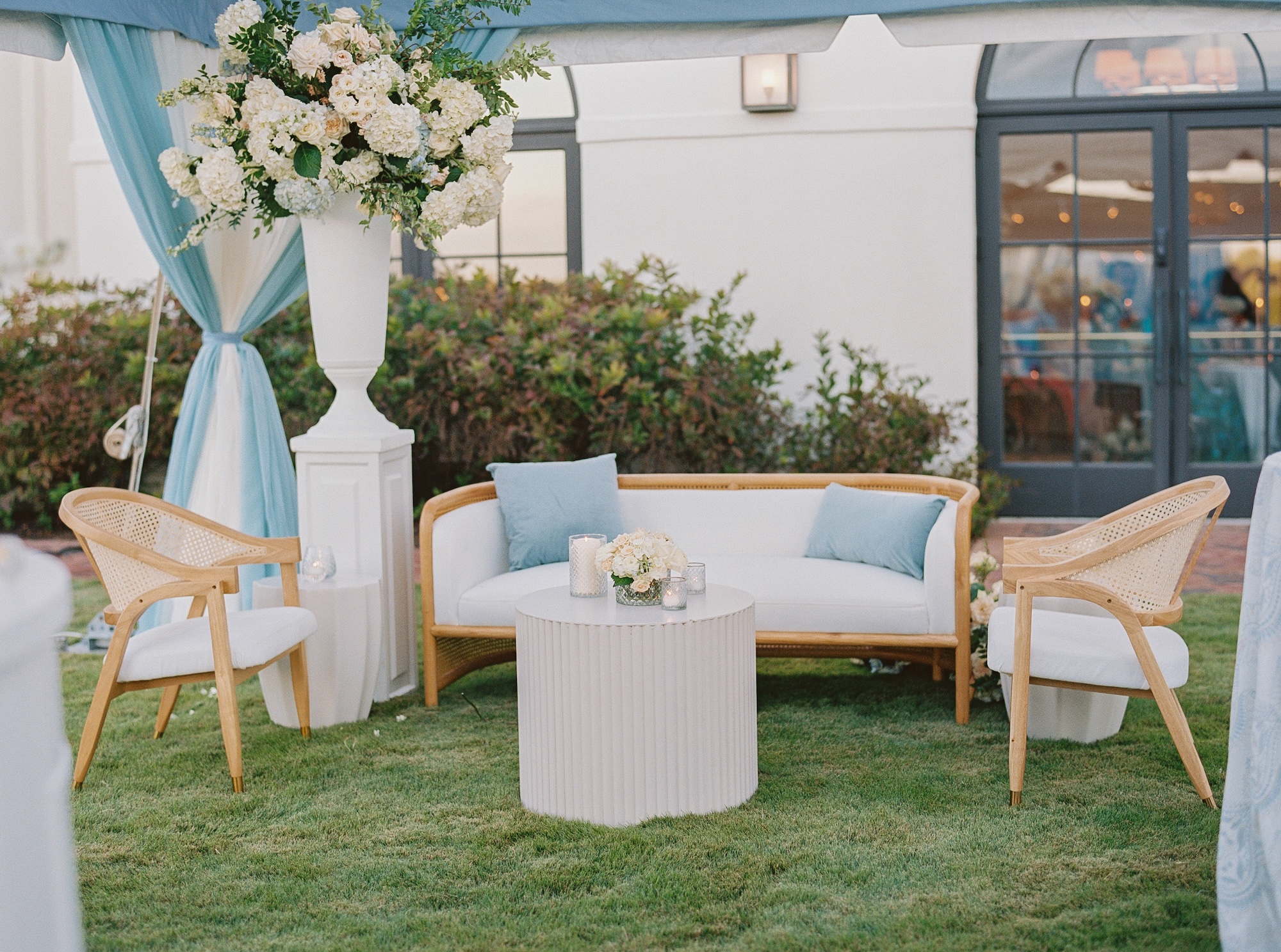Lounge furniture introduces comfort and intimacy, especially in larger spaces. Thoughtfully styled groupings give guests a place to relax between dances, catch up with friends, and enjoy the celebration from a different perspective. These moments soften the overall design while encouraging meaningful interaction.