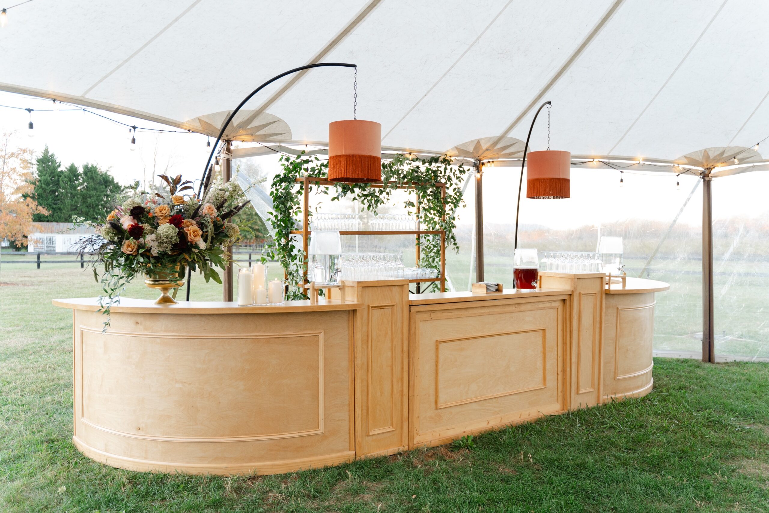 Bars are often the heartbeat of a reception. Pieces like our Double White Estate Bar with Estate Columns don’t just serve drinks. They anchor the room and naturally draw guests together. Custom finishes, layered signage, and intentional placement turn a functional necessity into a focal point that supports both flow and atmosphere.