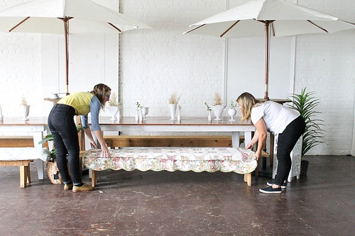 If the nordic chic vibes aren’t quite your style, you can opt for more of a country picnic look by making one quick change. We swapped out the Sheepskin Rugs for two of our favorite Vintage Quilts. A change that’s charming and functional!