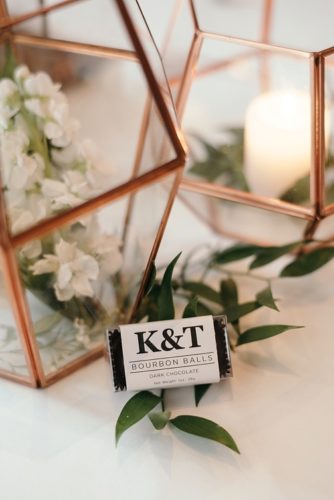Our Tall Geometric Copper Lanterns and Short Geometric Copper Lanterns are dotted along the reception tables adding just the right touches of modern metallics and classic romance.