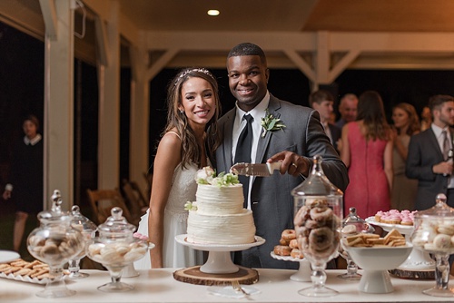 Nena and Tre recently said “I Do” on the beautiful and lush back lawn of Seven Springs Farm. This sweet couple, who were high school sweethearts, had a lovely and elegant vision for their big day. With a little help from a few of our favorite #pandjpretties, the talented team at Wood Grain & Lace planned this celebration and brought Nena & Tre’s vision to life! From their lovely outdoor ceremony to the delicious dessert display, this day was simple, chic and personal. We hope you enjoy browsing some of our favorite details in the beautiful images below captured by the talented Meredith Ryancarz Photography.