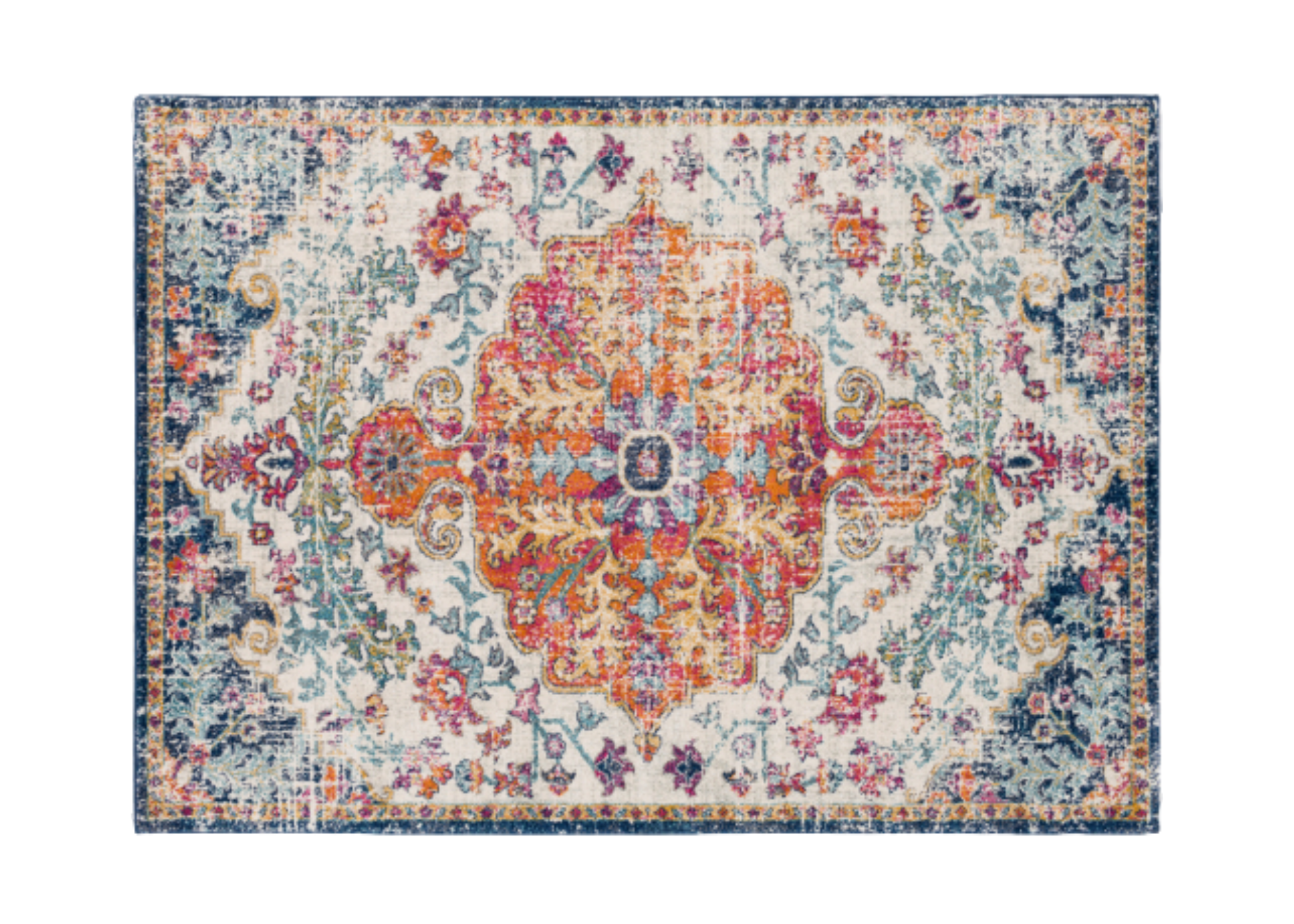 This lovely rug features vibrant colors and a beautiful design, sure to make any lounge area pop!