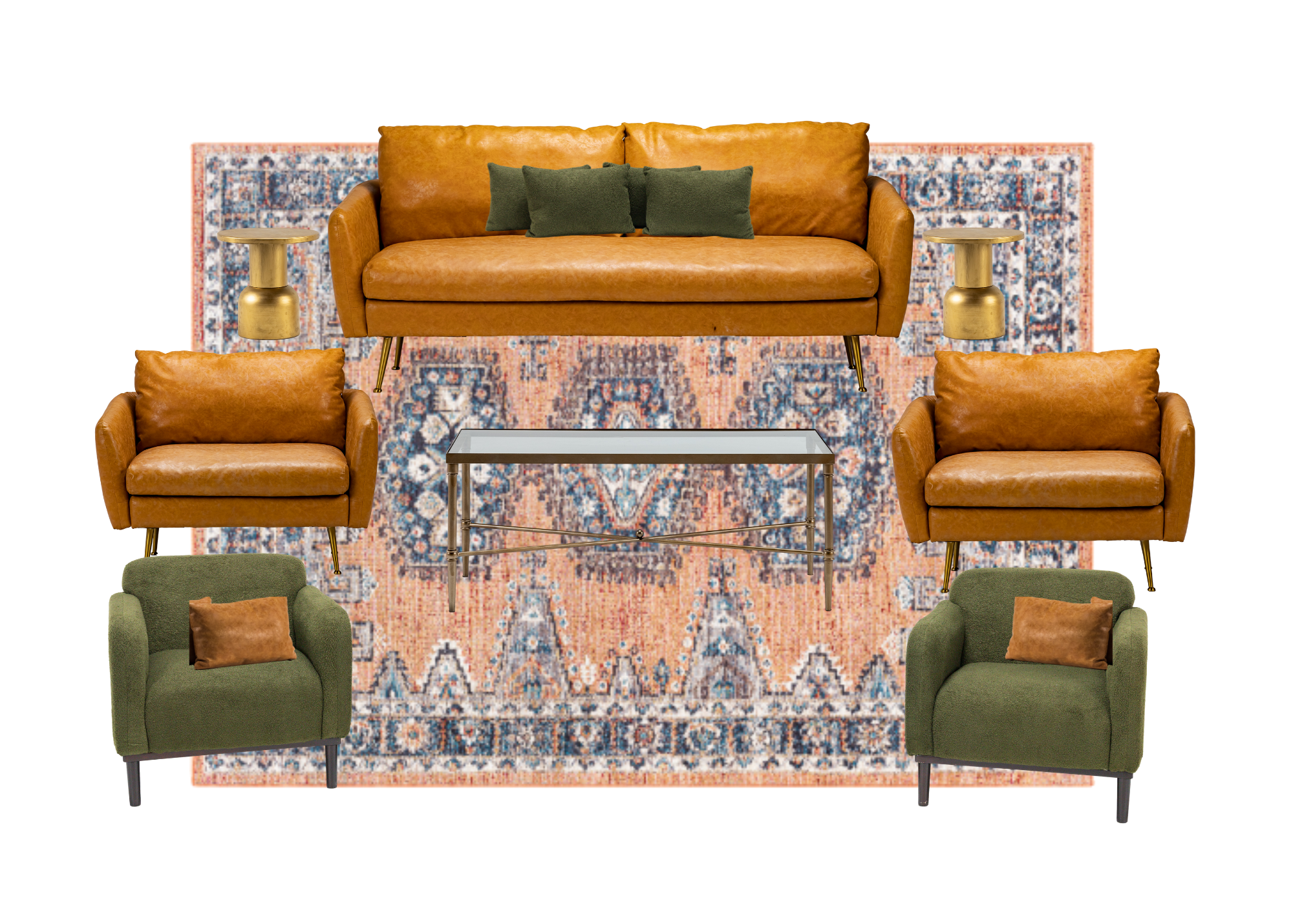 A cool and cozy lounge inspired by leathers and jewel tones!