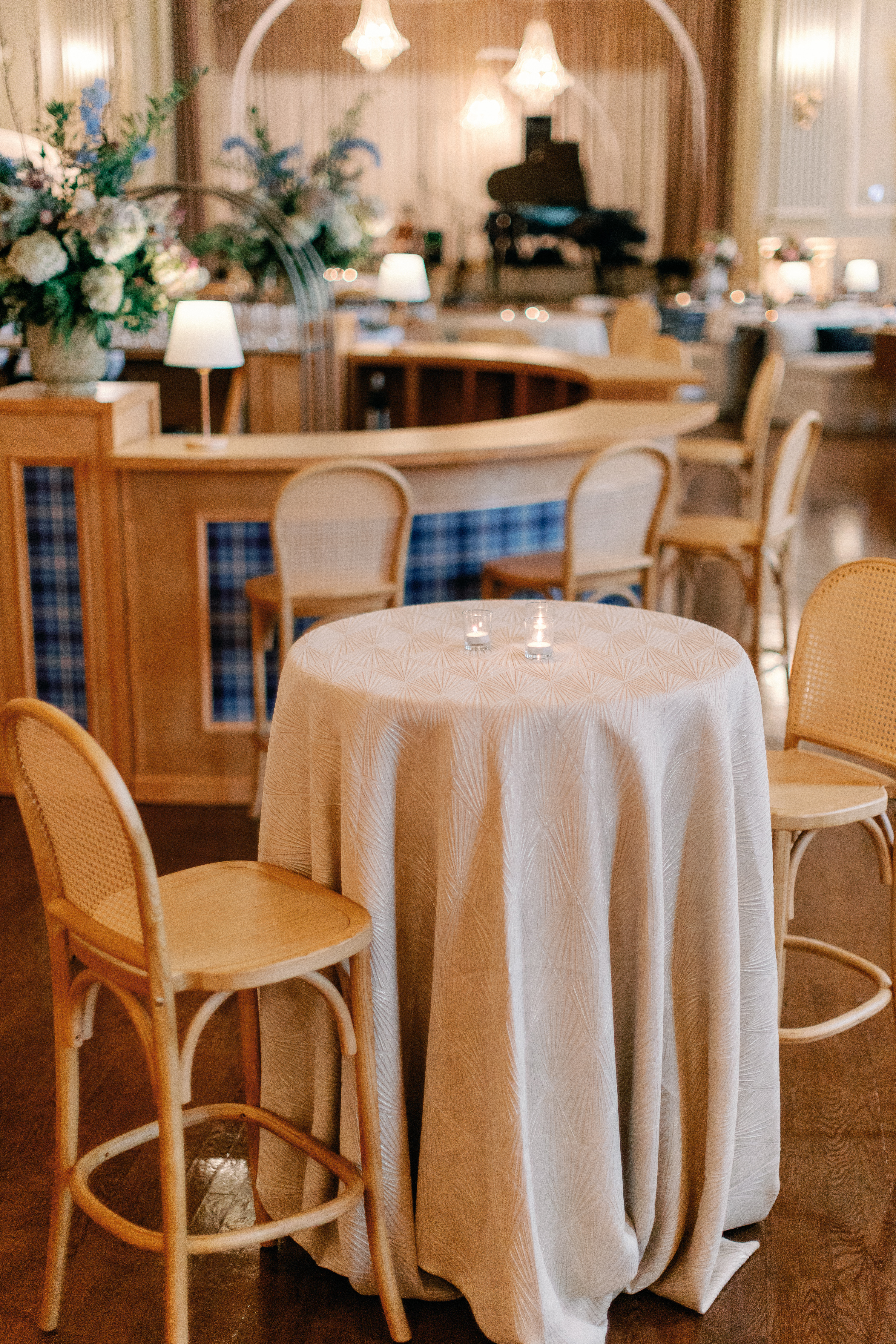 Introduce a touch of elegance to your space with our Cane Back Barstool. Featuring a beautifully woven cane backrest, this barstool combines vintage charm with modern style, offering both comfort and a sophisticated aesthetic. Event images by Danielle J Norton and Justin Hankins Photography.