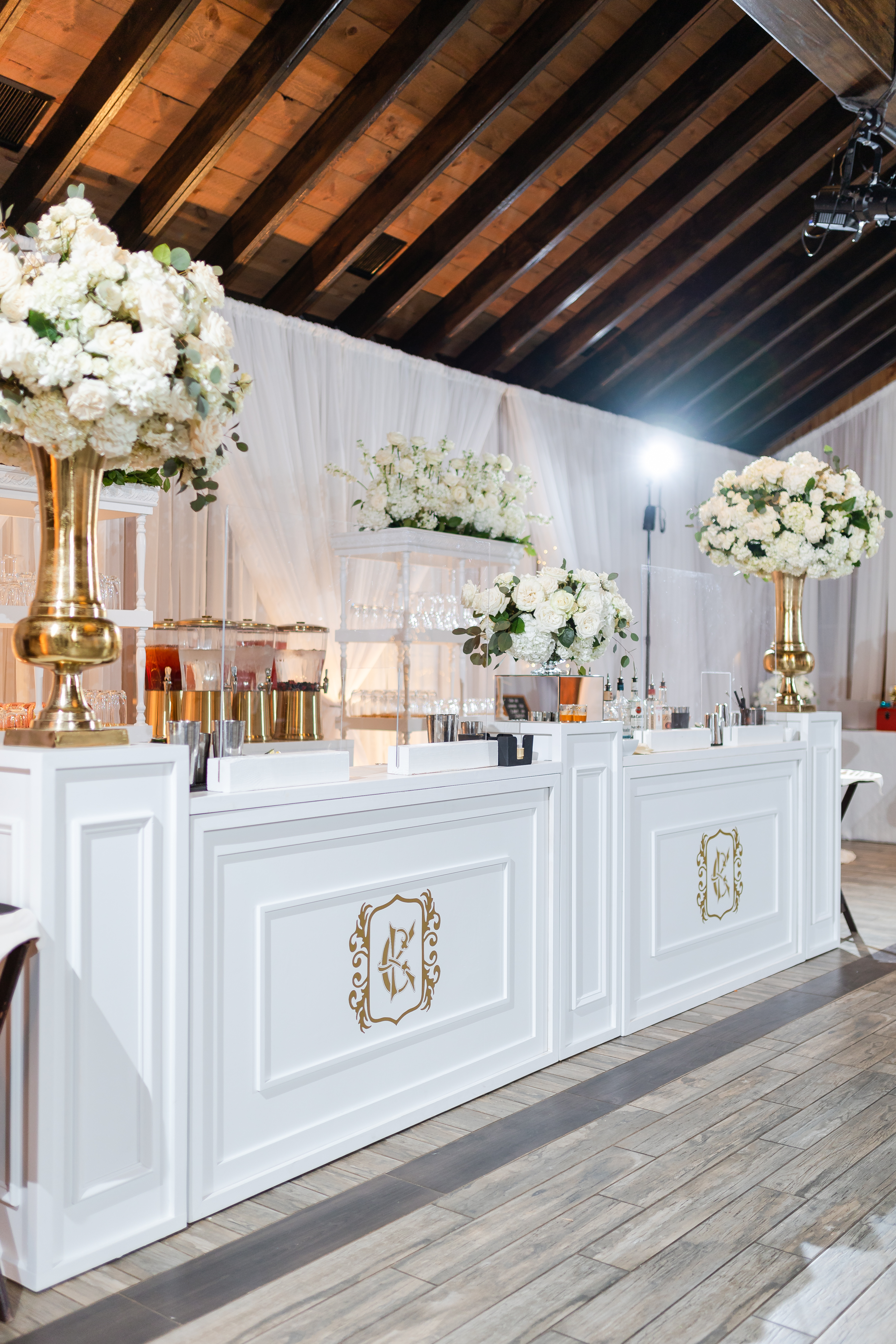 This crisp white double estate bar is sure to make a big statement at your next event. Flanked by white estate columns for additional height - perfect for floral arragements or one of our tabletop lamps! These bars can be customized with other shadowbox bar inserts to match your style! Event images by Shaun Malik Photography, Ashley Cox and Luke & Ashley Photography.
