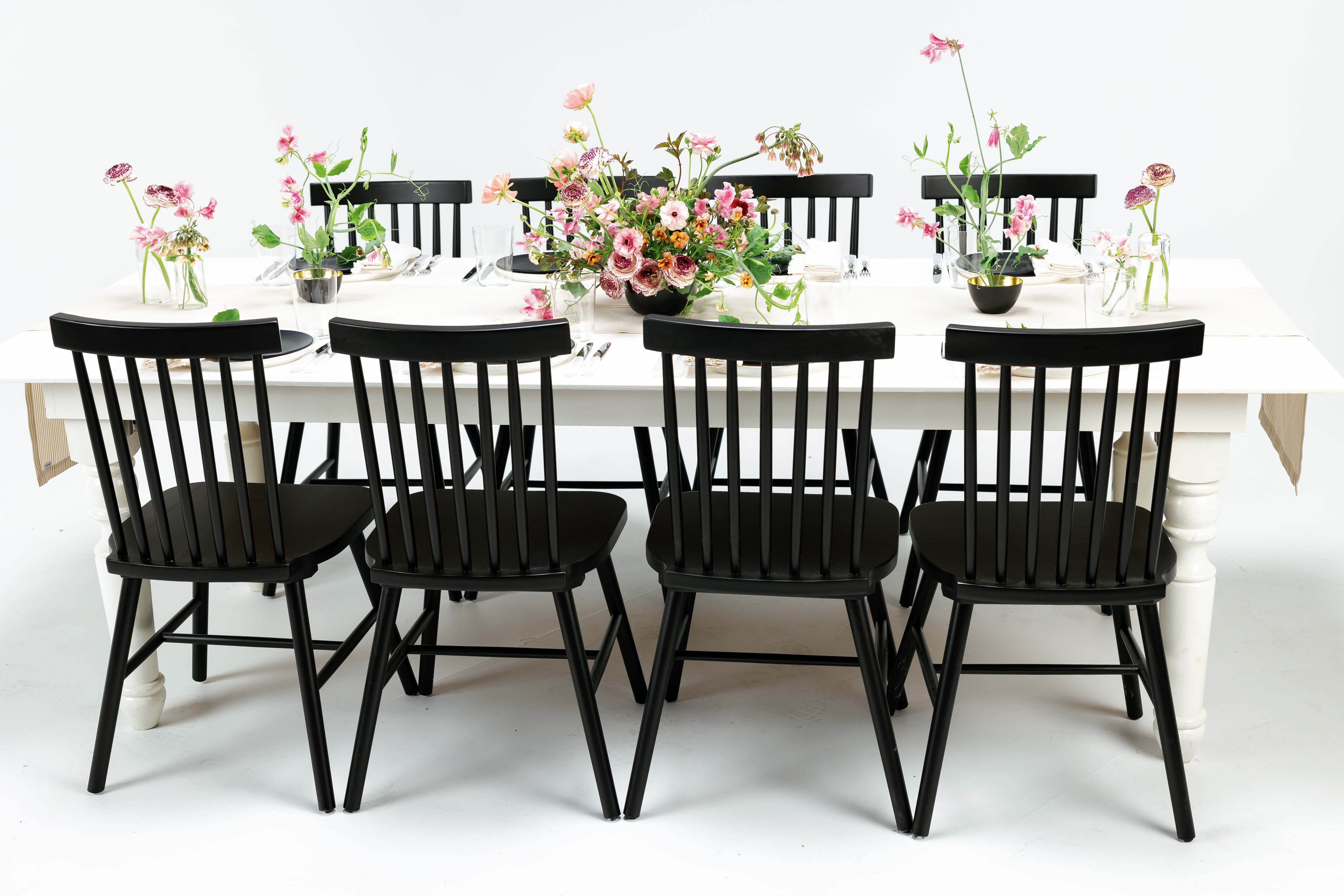 This chair's classic silouhette is sure to make a statement paired with any table or ceremony seating! Event images by The Homebody Folk and Ashely Cox Photography.