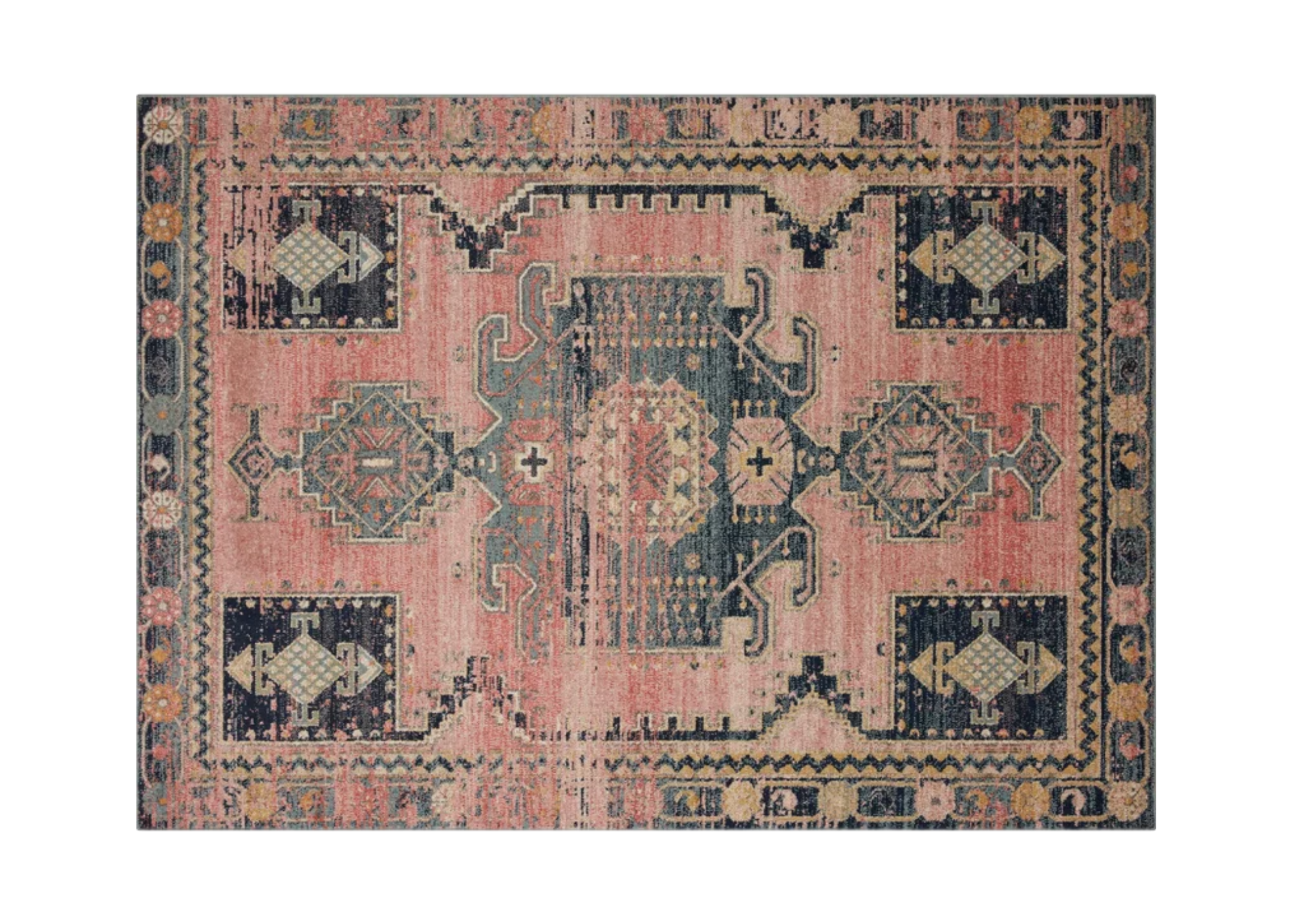 This lovely rug features gorgeous pinks and blues with a contemporary design. Perfect for event lounges or home staging!