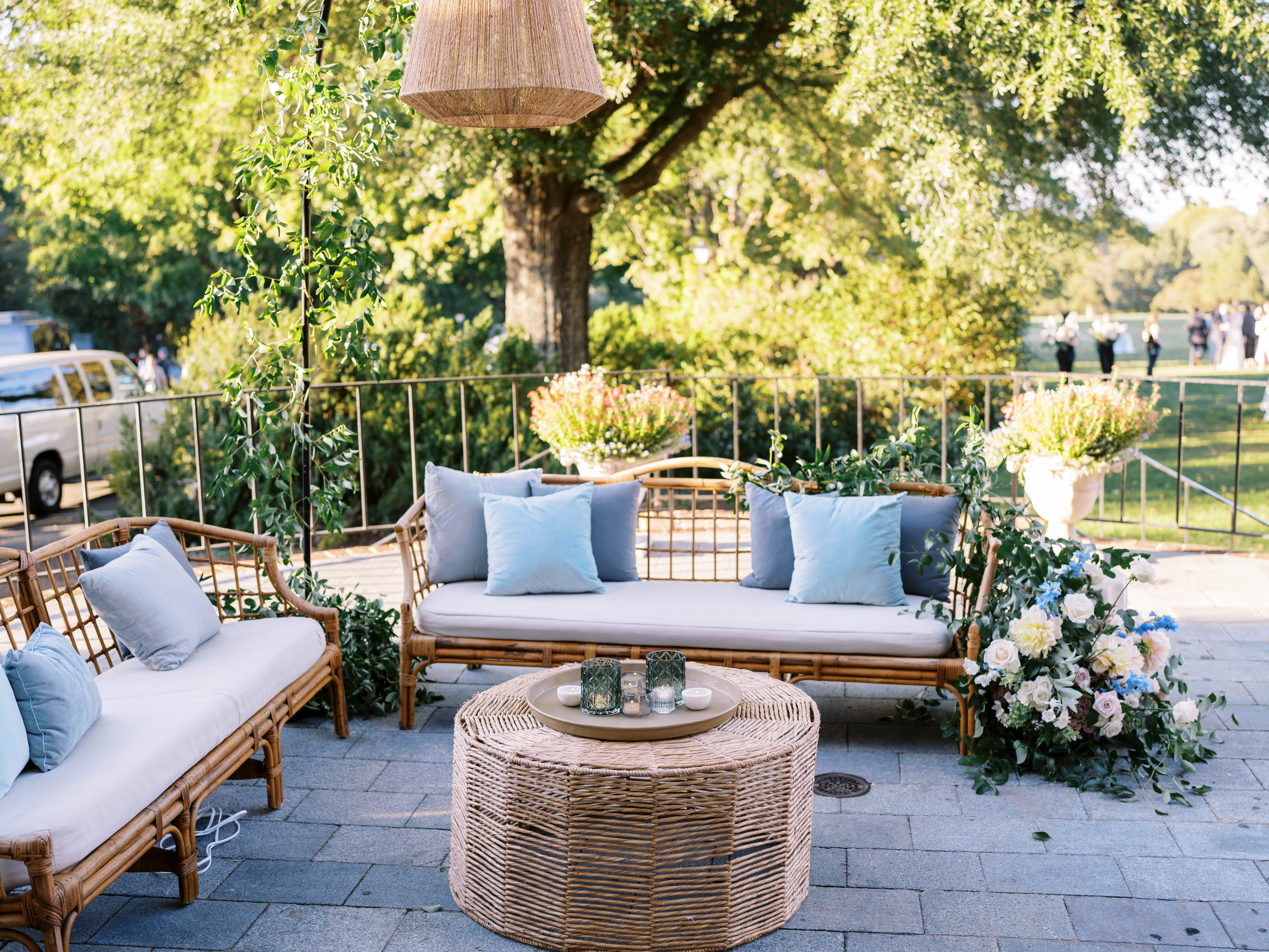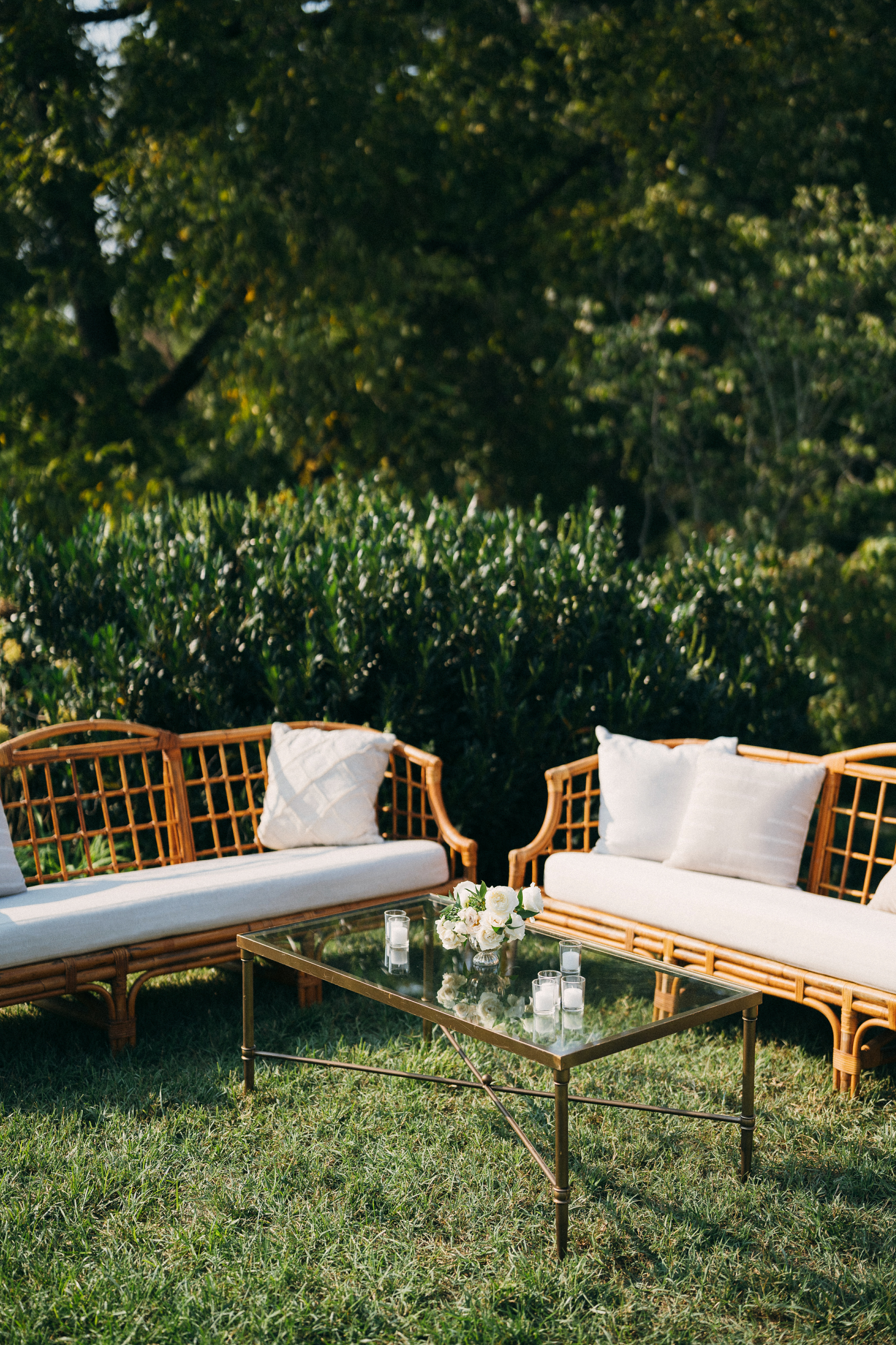 This bamboo sofa with neutral upholstery gives all the boho vibes! Event images by Bakerture Photo, Ashley Cox Photography, and Gideon Photography.