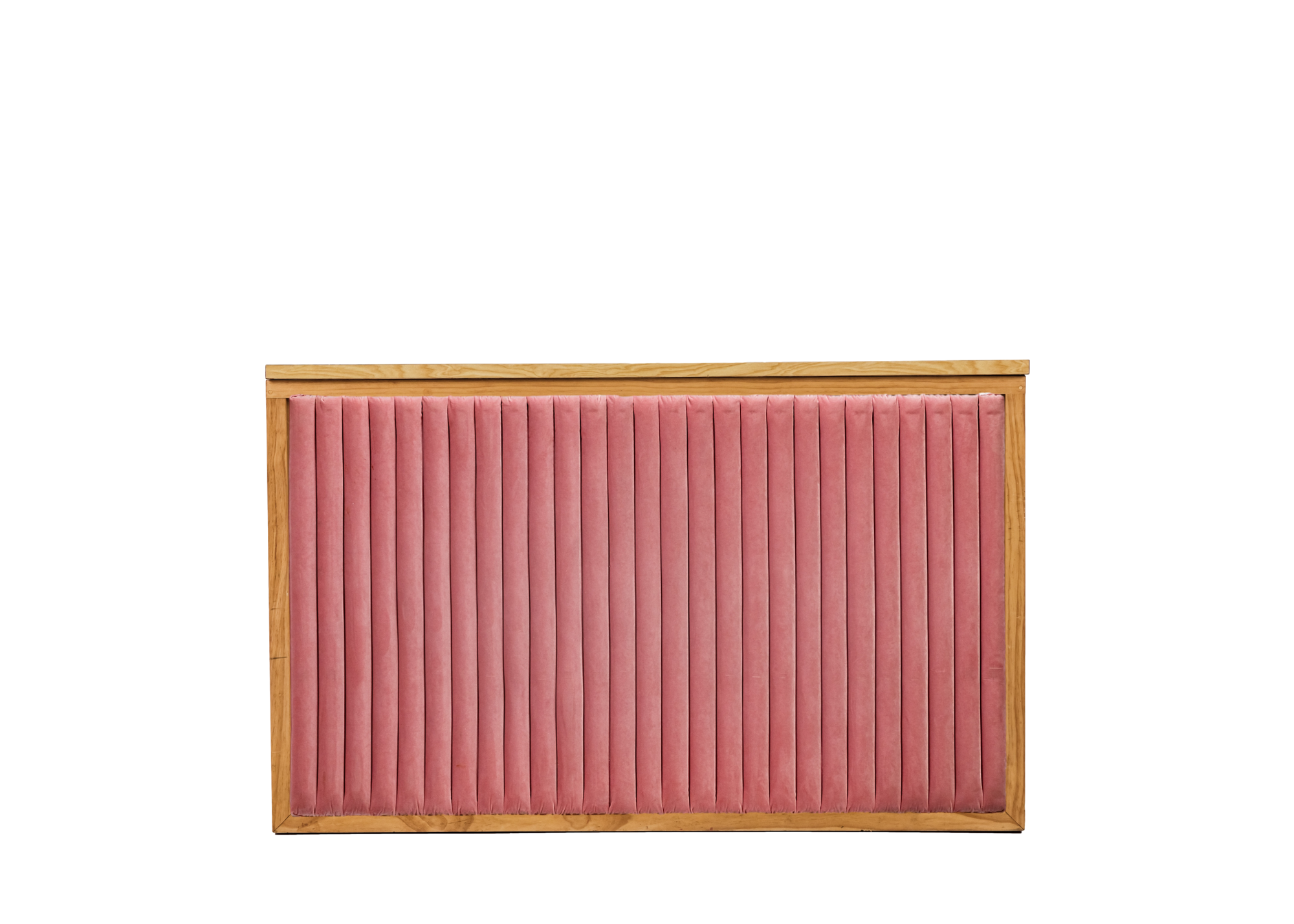 Our Shadowbox bar is as functional as it is pretty! This stunning upholstered bar front highlights the soft pink velvet and luscious curves of our unique Malibu sectional!