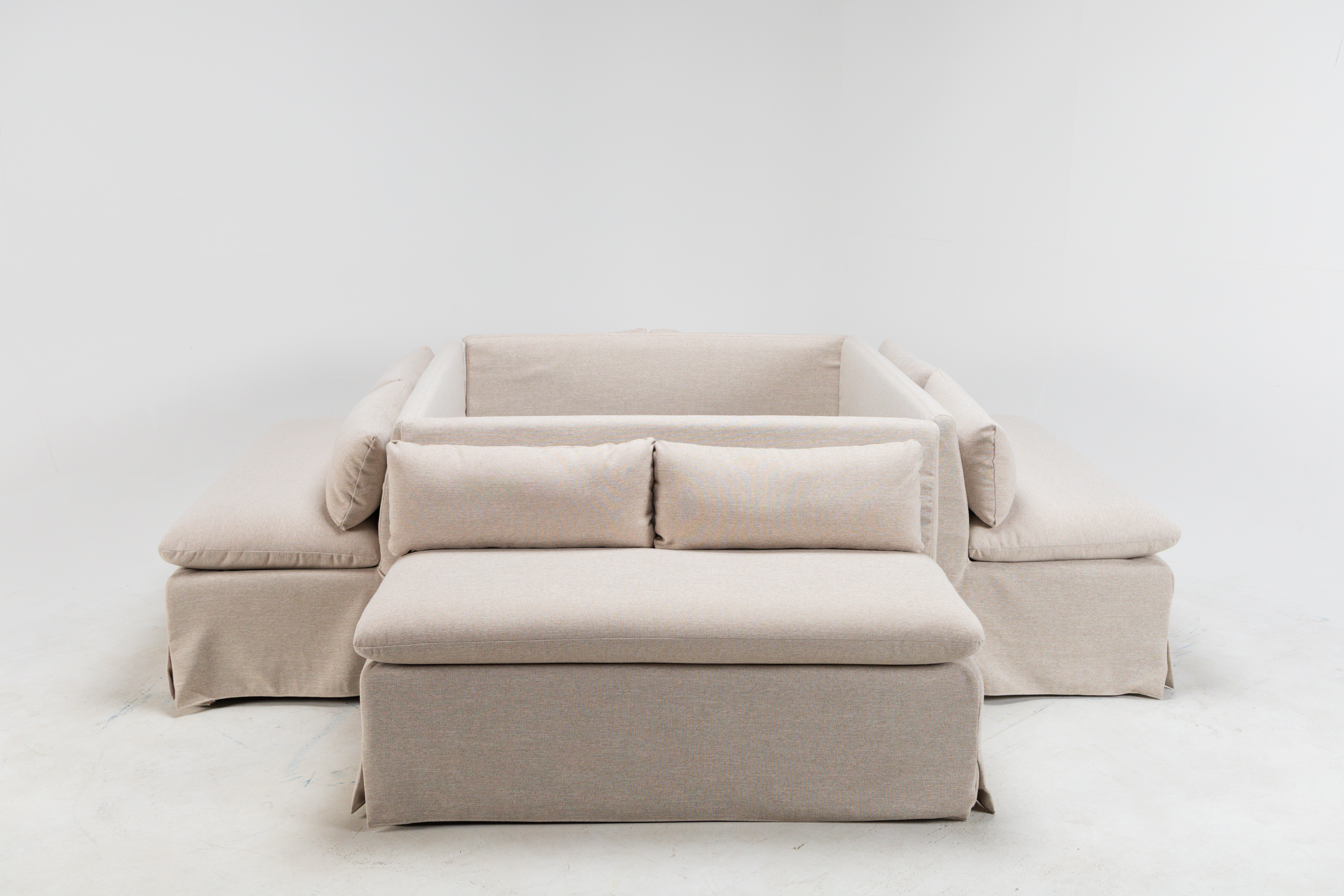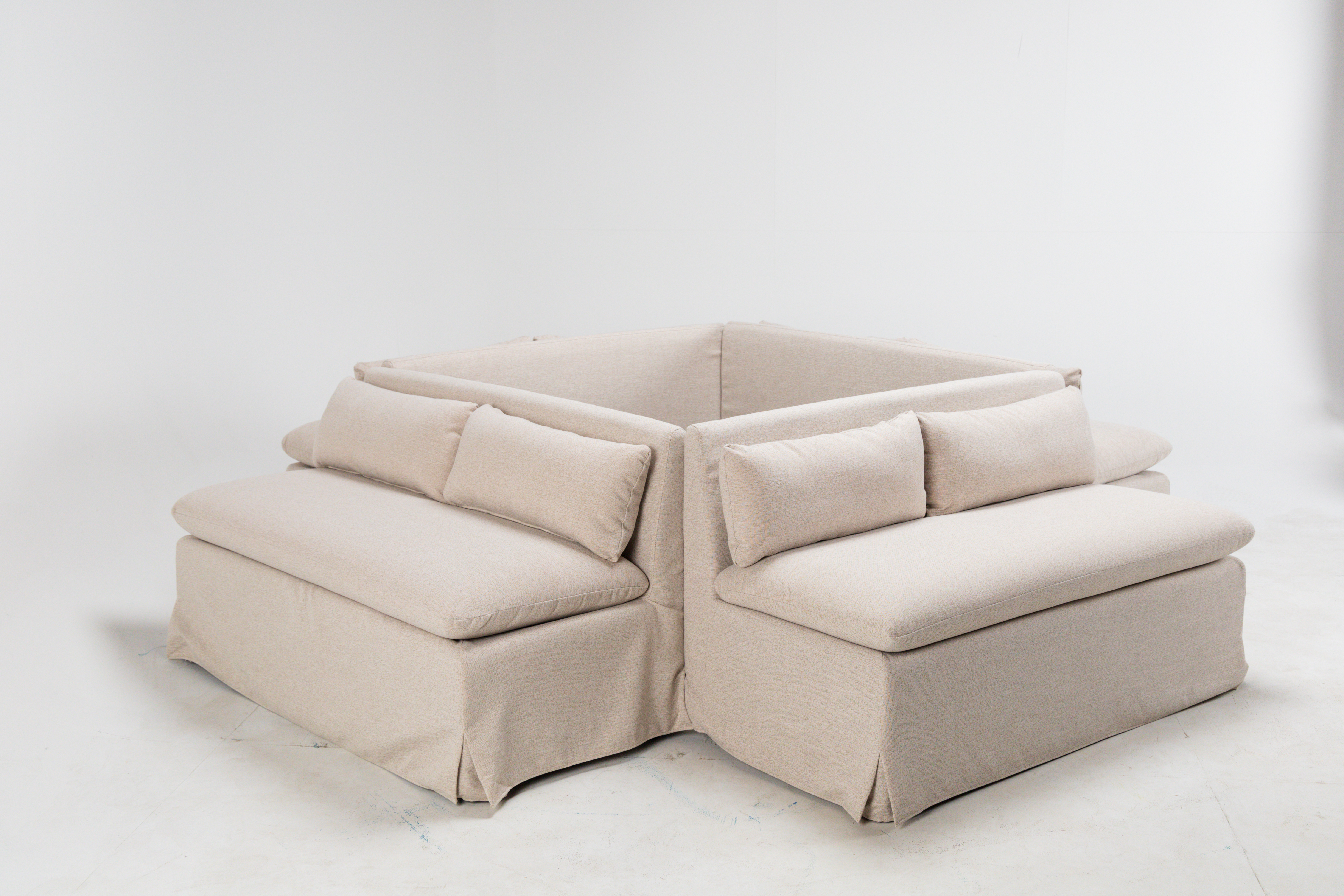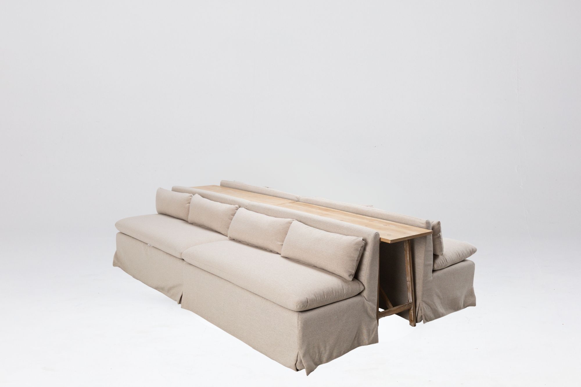 Neutral and refined - this banquette bench offers gorgeous and cozy seating, featuring a pillow back and seat cushions! Event image by Perry Vaile Photography, Kim Stockwell Photography and Jen Fariello Photography.