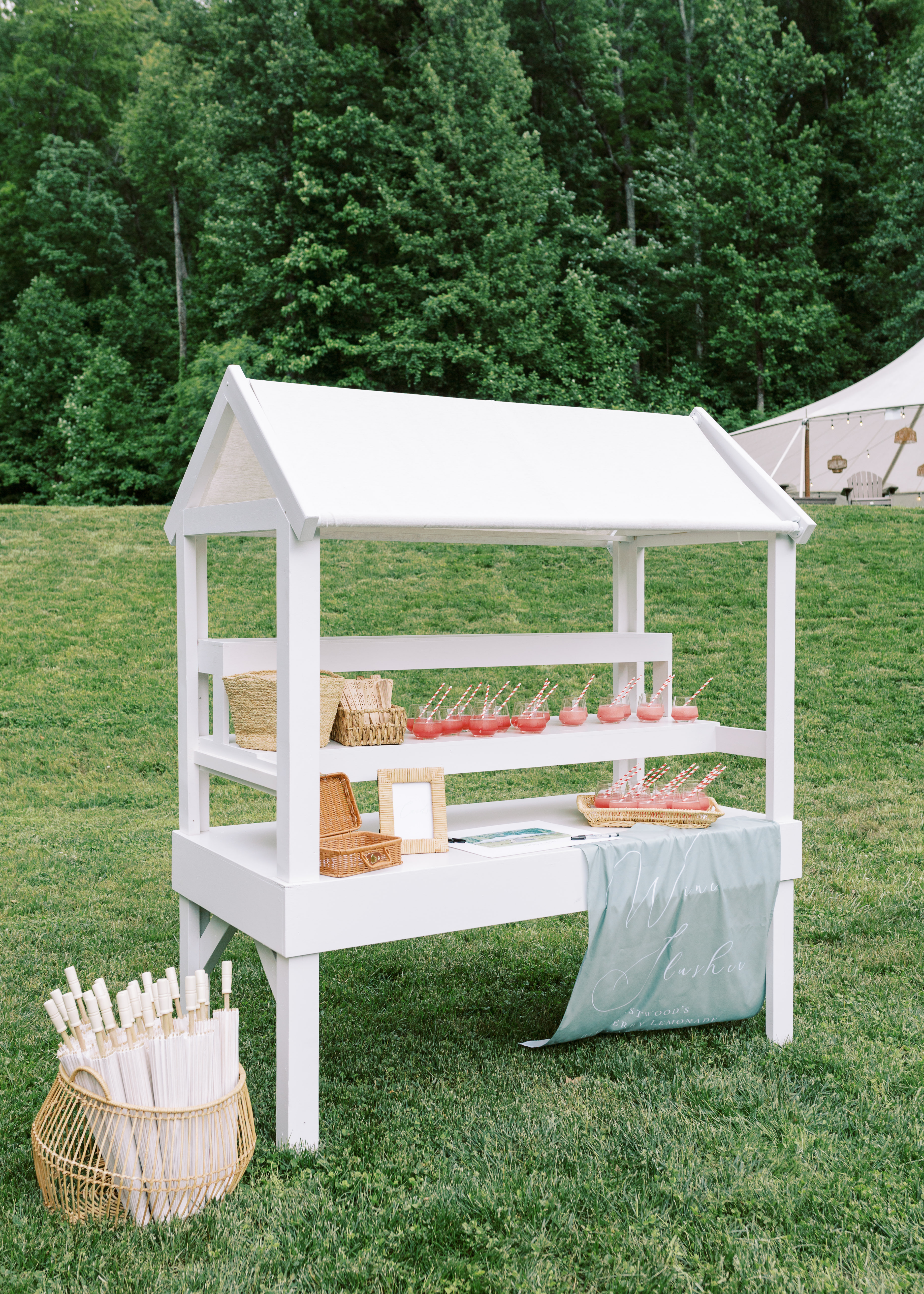 We are absolutely in love with this custom built cart! With a classic white awning this piece is so fun and versatile! Makes a perfect display for wedding or party favors, desserts, hors d'oeuvres, florals or really anything your heart can imagine! Custom fabric colors/patterns available on request! Event images by Kim Stockwell Photography, Alex C. Tenser Photography, and Natalie Jayne Photography.