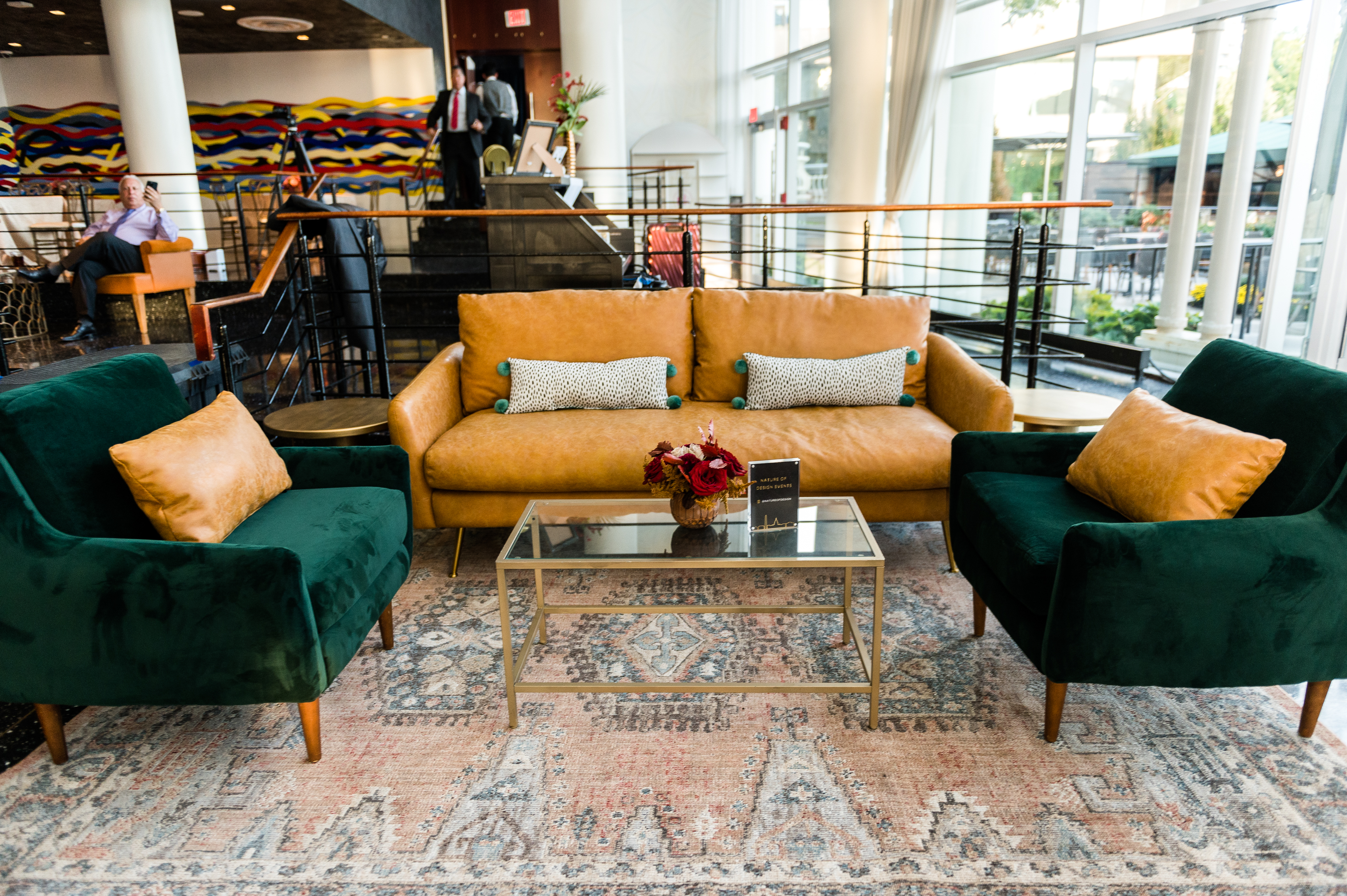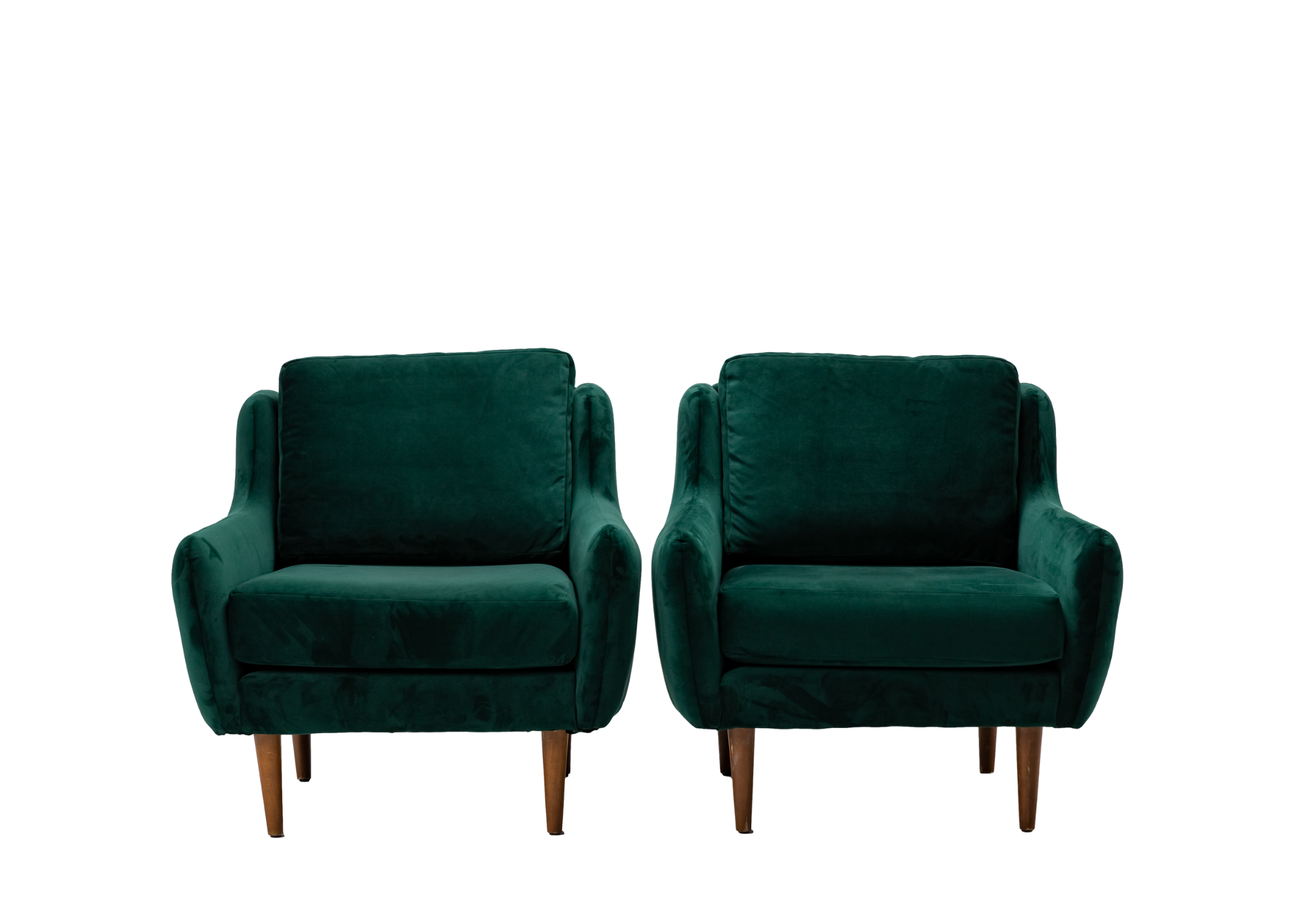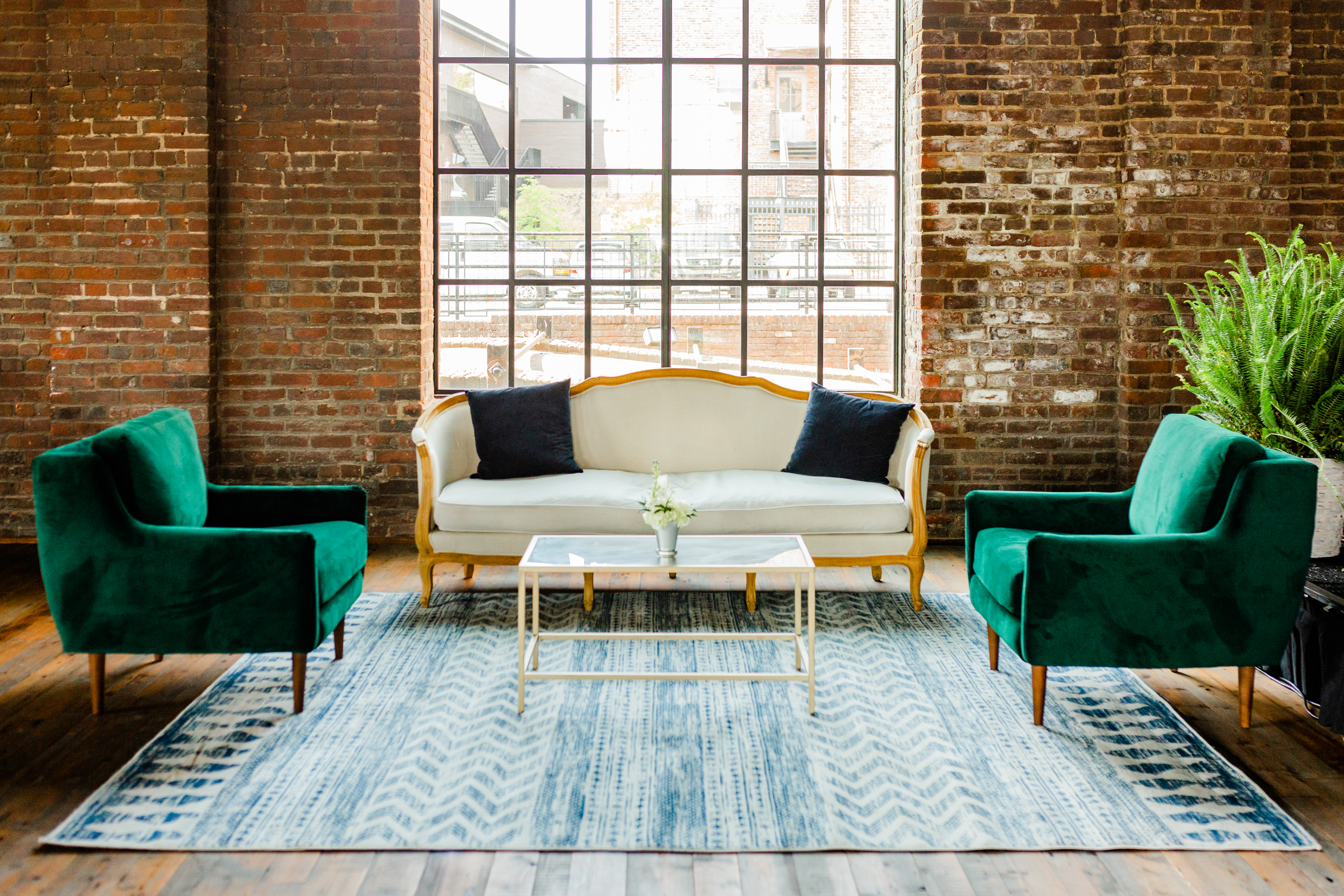 This pair of handsome club chairs boast a gorgeous emerald green upholstery. These beauties are a perfect fit for photo shoots, production props or event lounge areas! Event Images by Alex C Tenser Photography, Whole Heart Studios, and Terri Baskin.