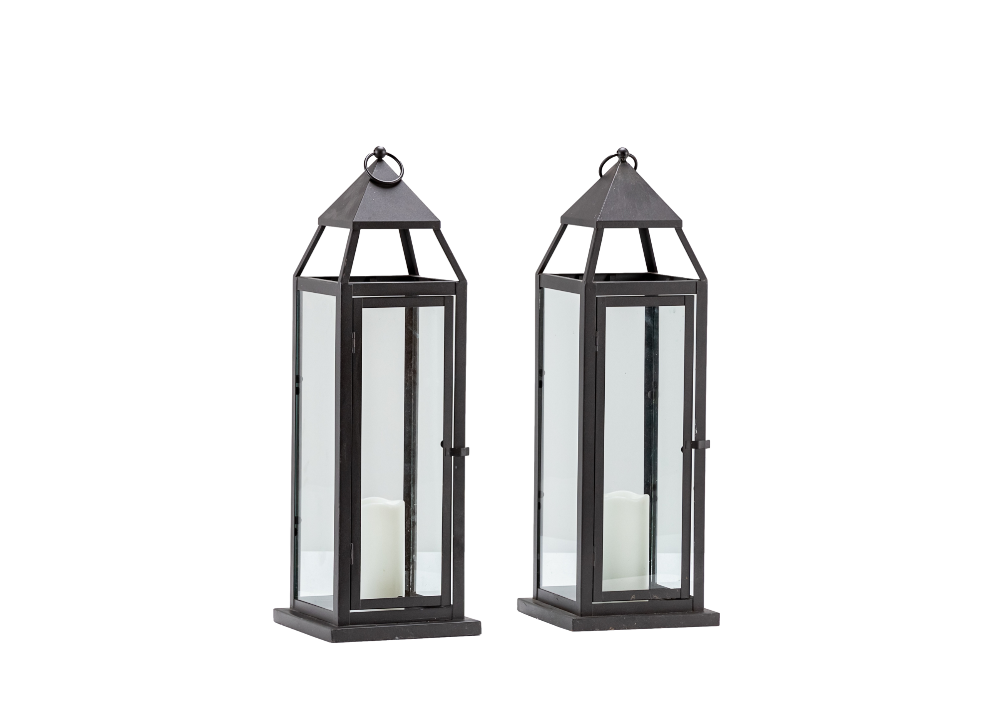 Pair of Medium Black Metal Lanterns with LEDs
