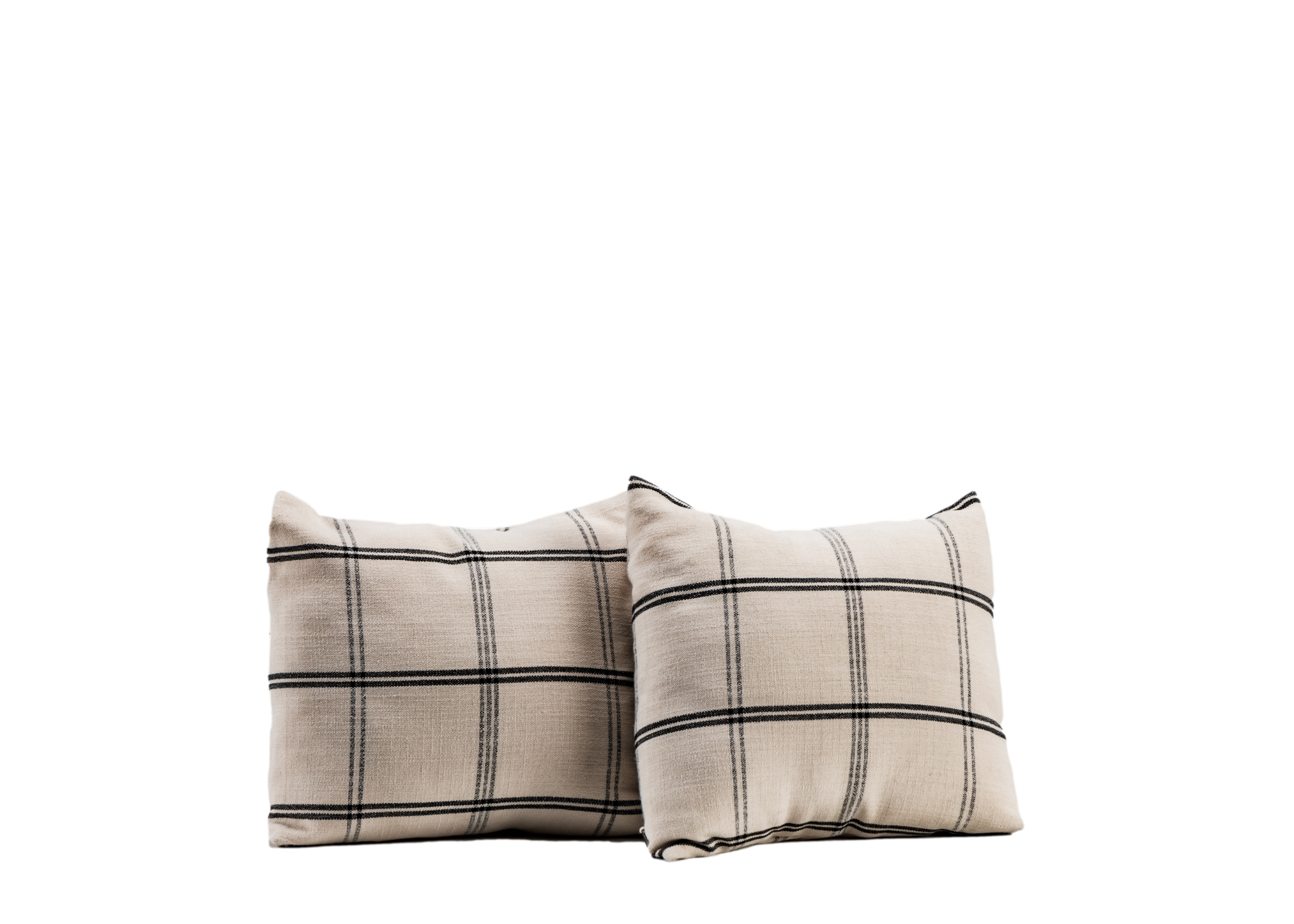 Pair of Neutral Plaid Linen Pillows
