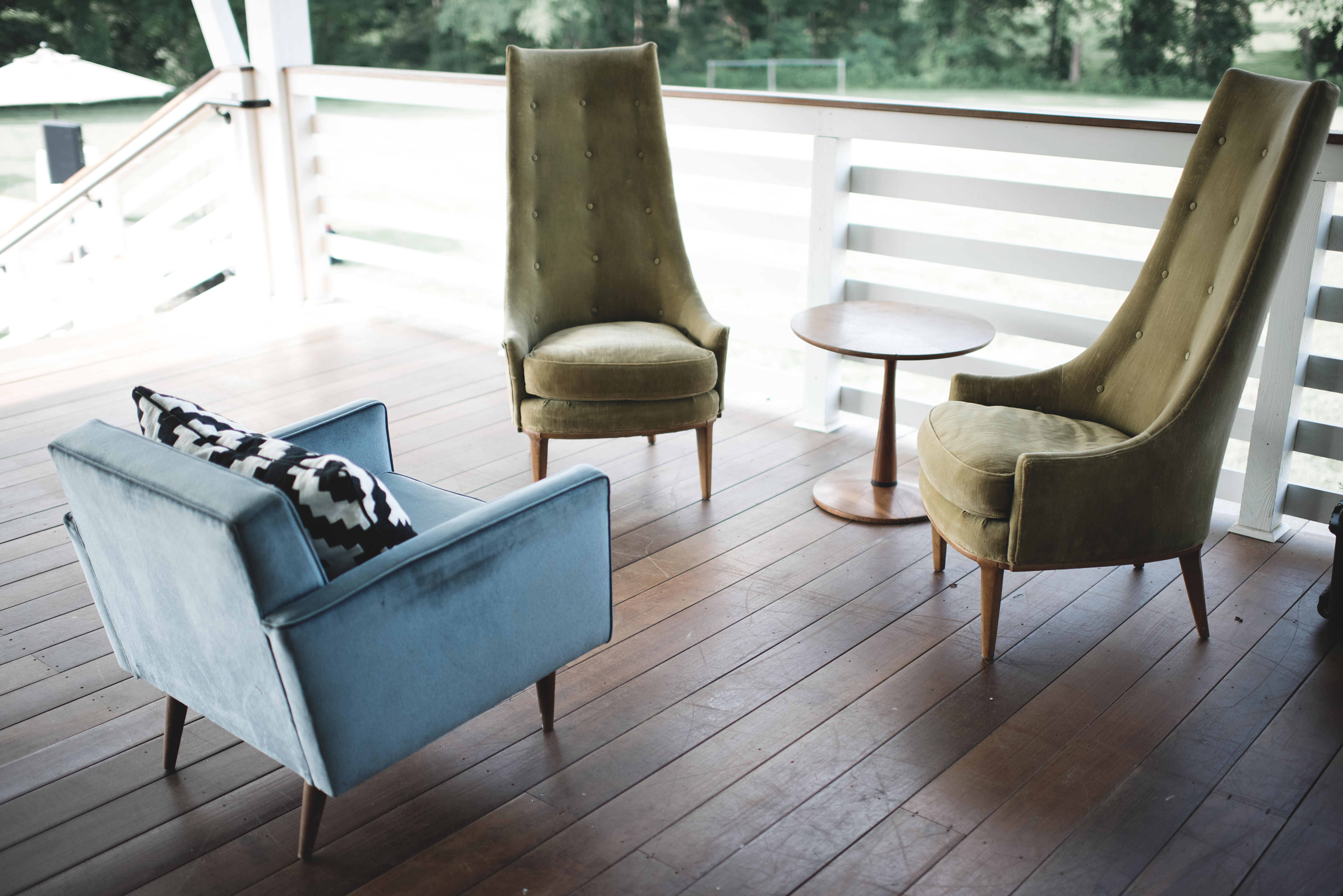 This pair of modern mid-century beauties are unique and whimsical! Upholstered in a vibrant green velvet, these chairs boast a great shape and are a fun and funky addition to any photo shoot or lounge area! Event images by Hana Gonzales, Terri Baskin, and Molly Scott Photo.