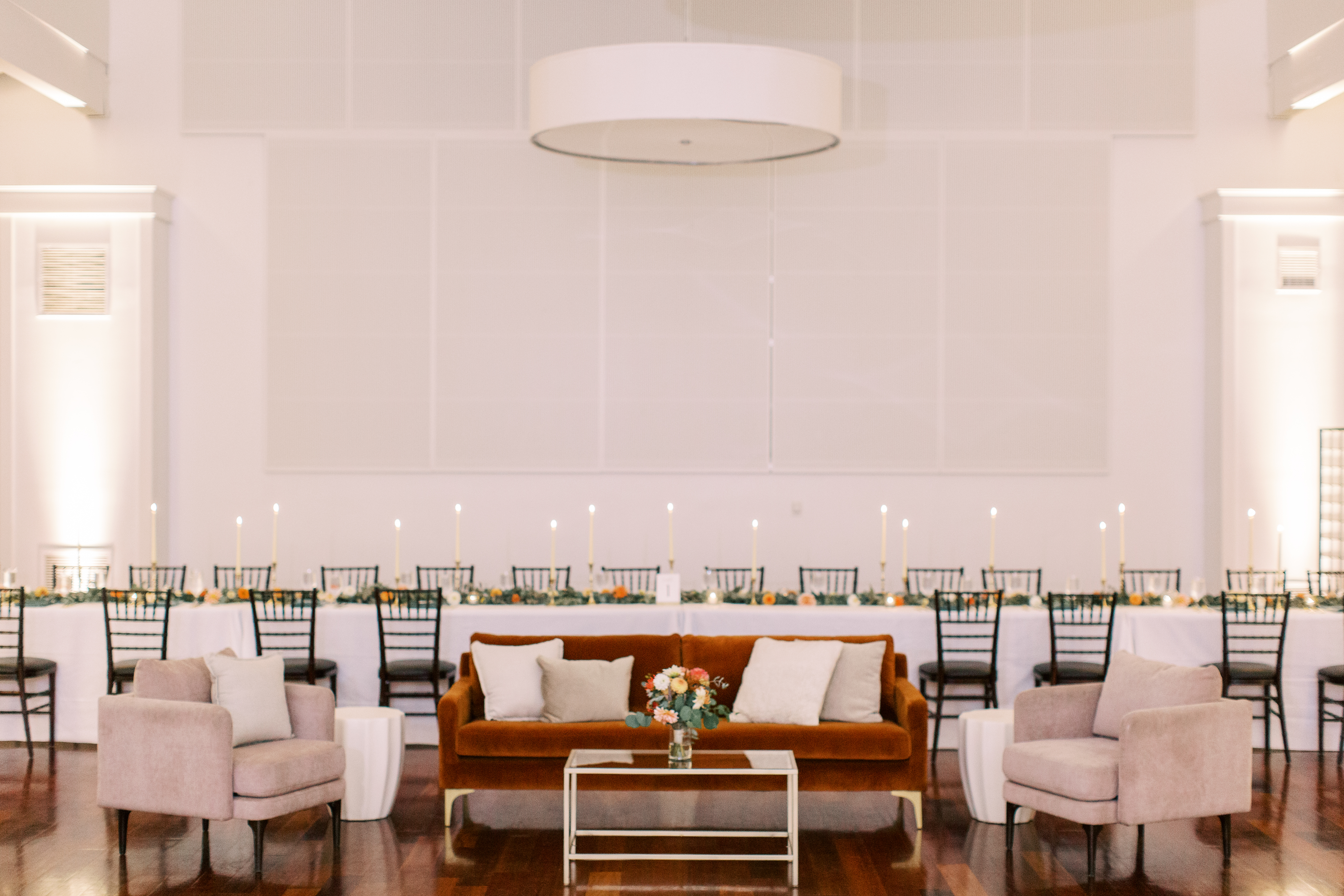 This handsome fellow, upholstered in a rust velvet, will make a stunning statement piece at any event! Event images by Deline Photography, Nikki Santerre, and Terri Baskin.