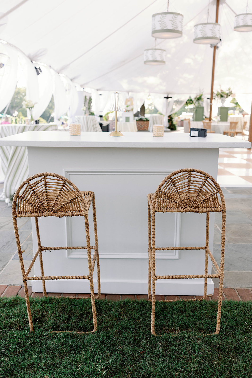 Simple and chic woven seagrass bar stool. Pair with our Estate Cocktail Tables at your next event! Event image by Natalie Jayne Photography and Danielle J. Norton.
