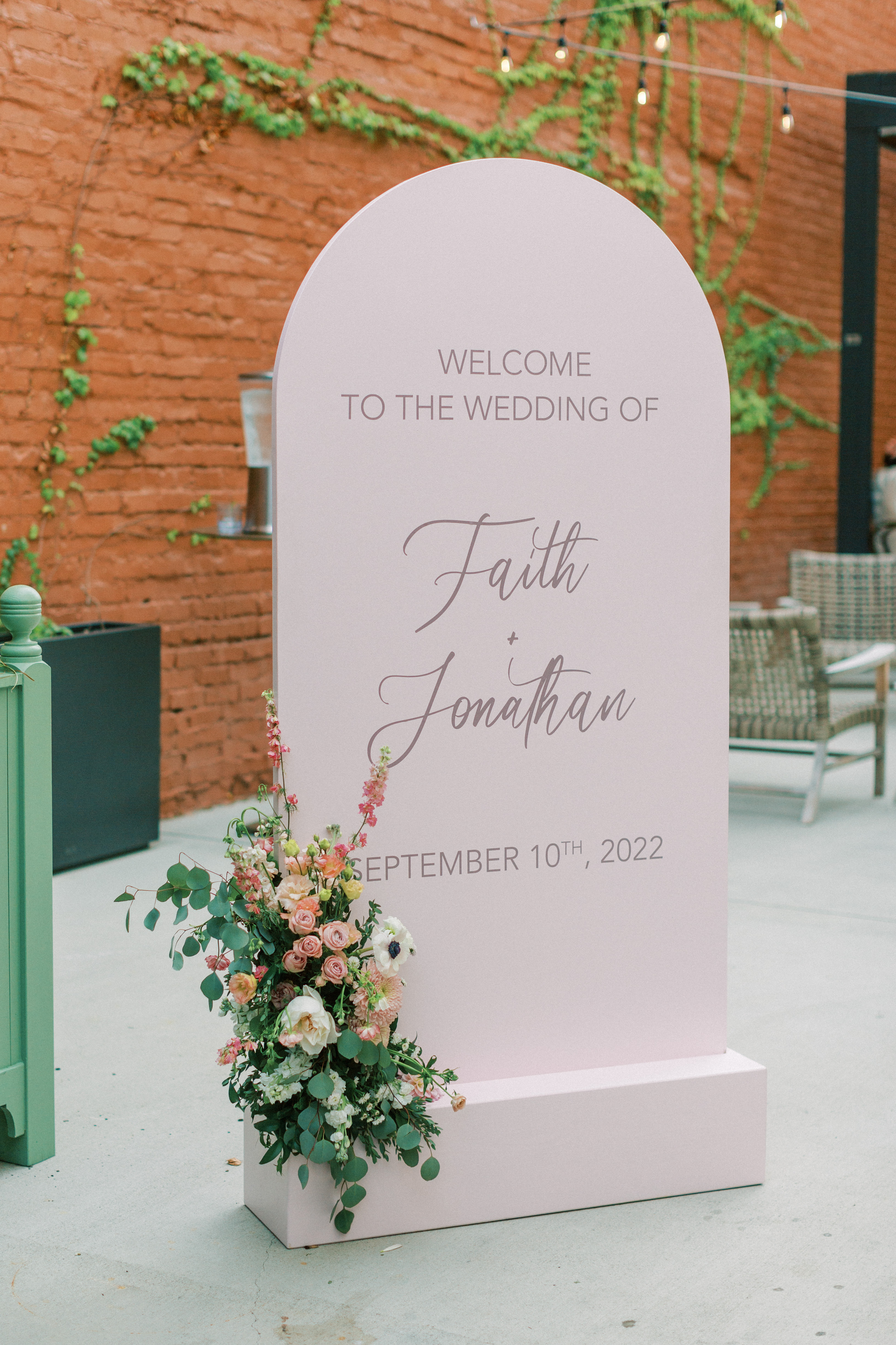 This simple and versatile panel is free standing and a fantastic backdrop option at any event! This piece is also perfect for custom designs via our in-house vinyl lettering services! Event image by Kristen Camielle.