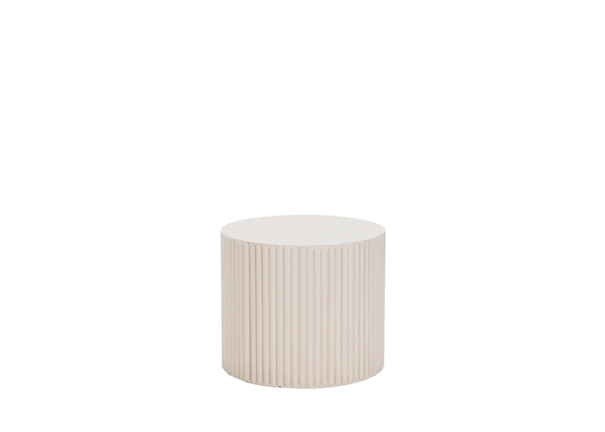 This striking round coffee table features a warm reeded wood design that is sure to capture your guests' eye at your next event! Event image by Mackenzie Leigh Photo and Hana Gonzales.