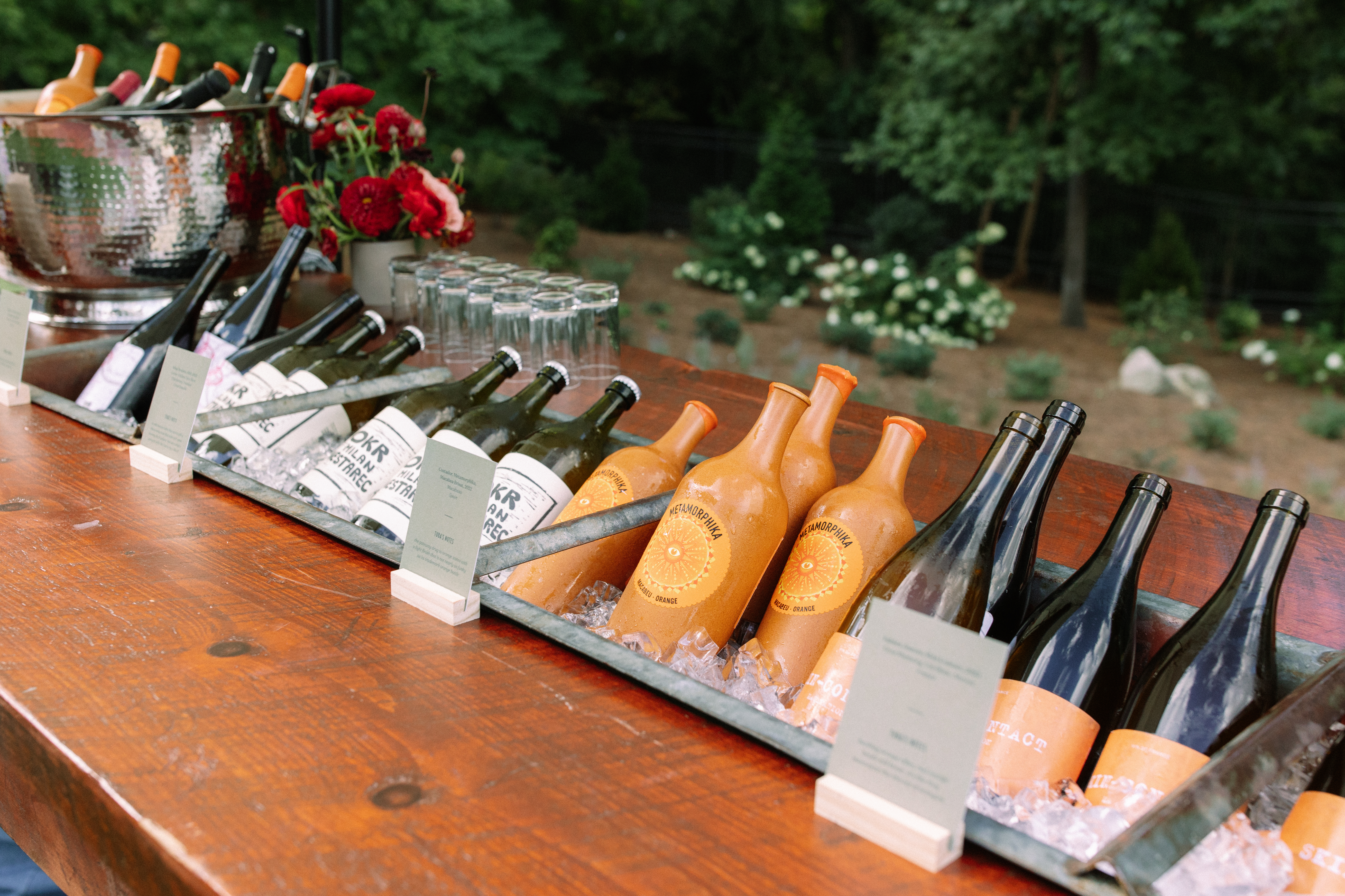 Hand crafted long wooden table with a galvanized trough inserts. Perfect for icing down beer and wine or as an oyster station. Event images by Natalie E Photography, Katie Wilson Photography and Kenzie Creates.
