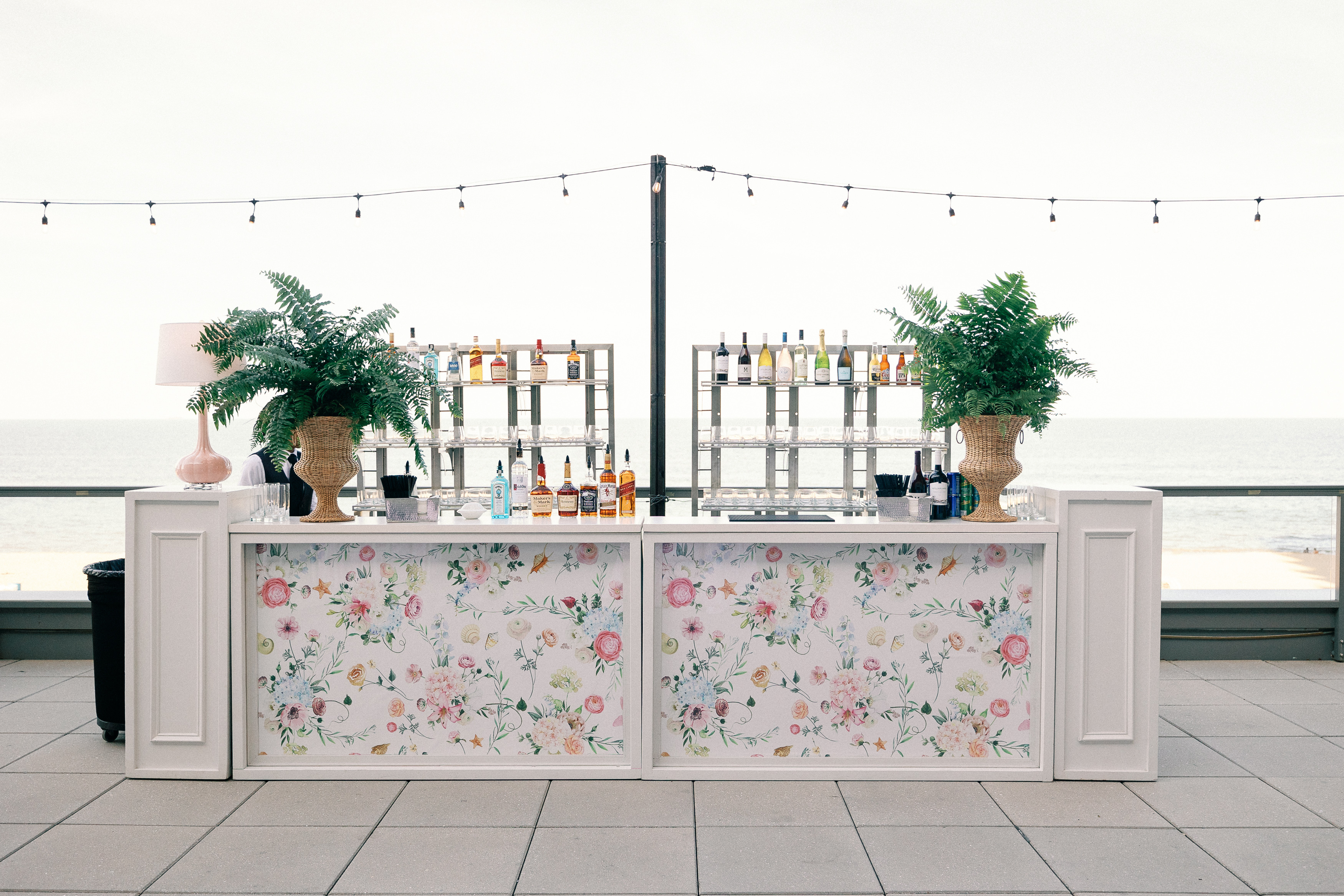 These white columns are part of the Estate line and create gorgeous end caps on our Shadowbox bars! Perfect for floral arrangements and to create dimension within your bar design! Event image by Justin Hankins Photography.