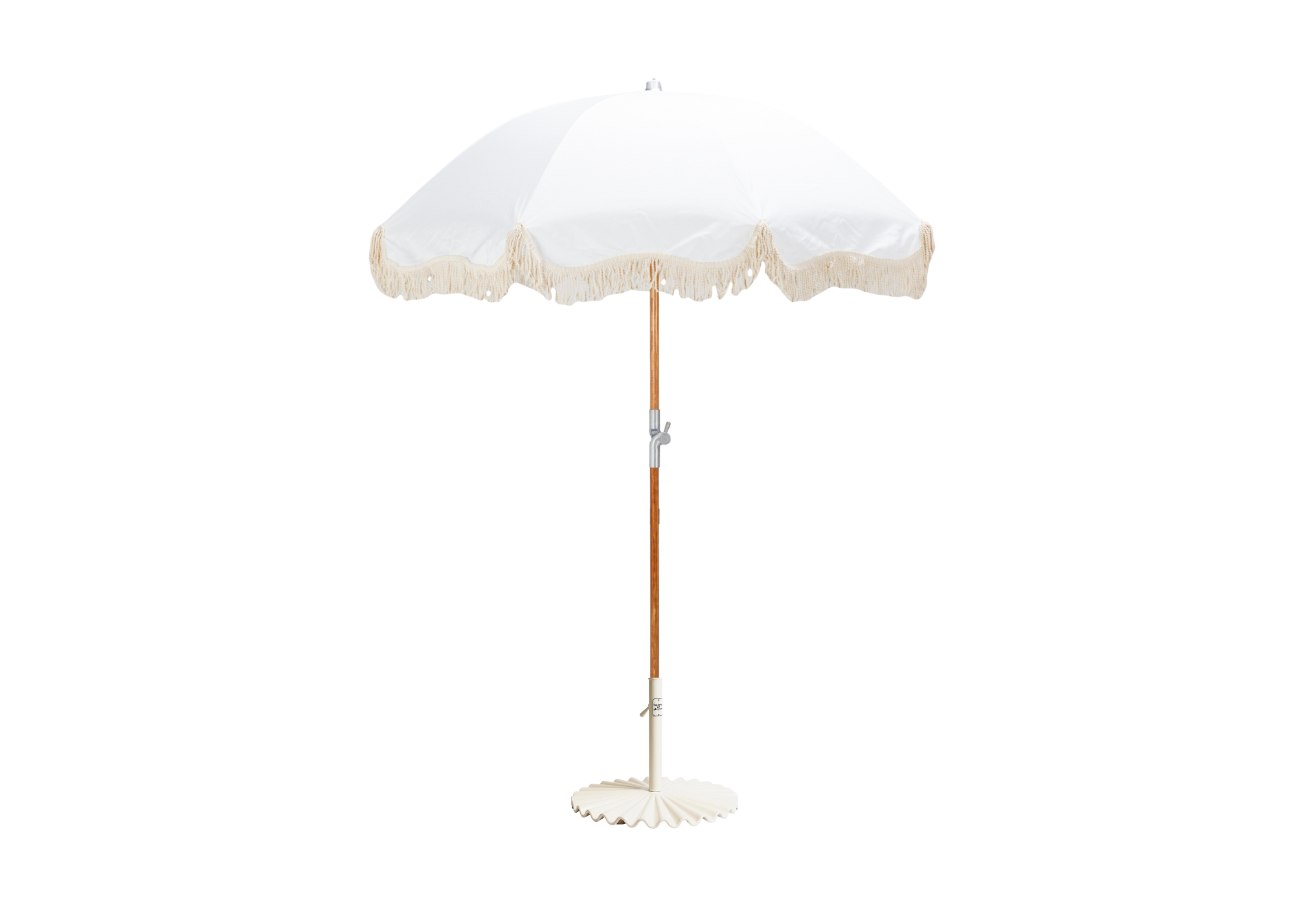 Our white umbrellas with fringe paired with the most adorable scalloped base are perfect for outdoor weddings, waterfront receptions, backyard barbecues or corporate picnics!