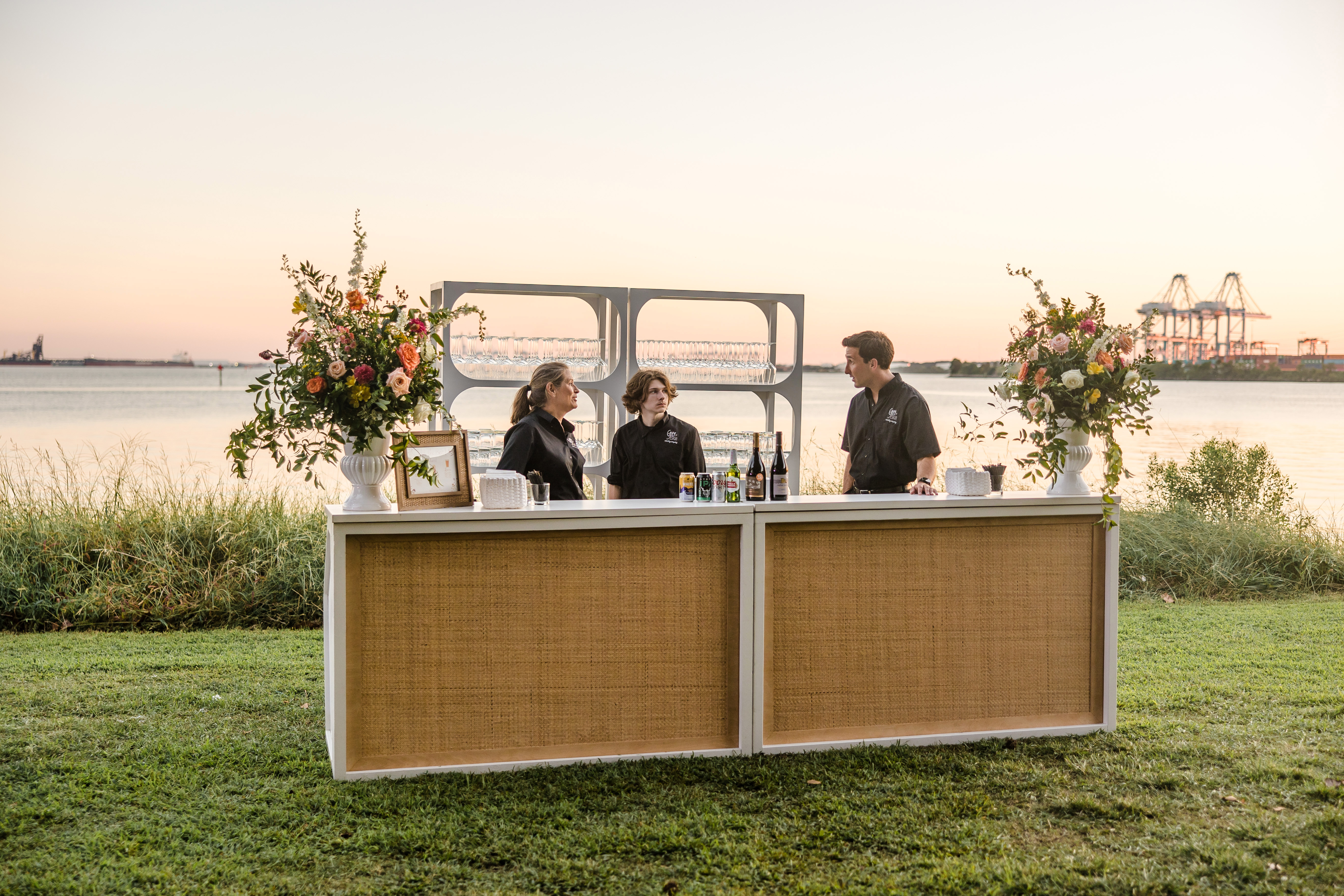 Our most customizable piece yet! Our Shadow Box Bar is as functional as it is pretty! The front of this bar features a rattan detail sure to make a statement at your next event! Event image by Echard Wheeler Photography