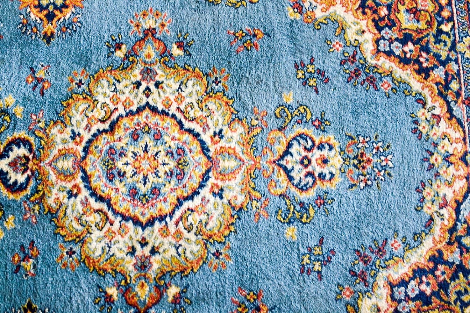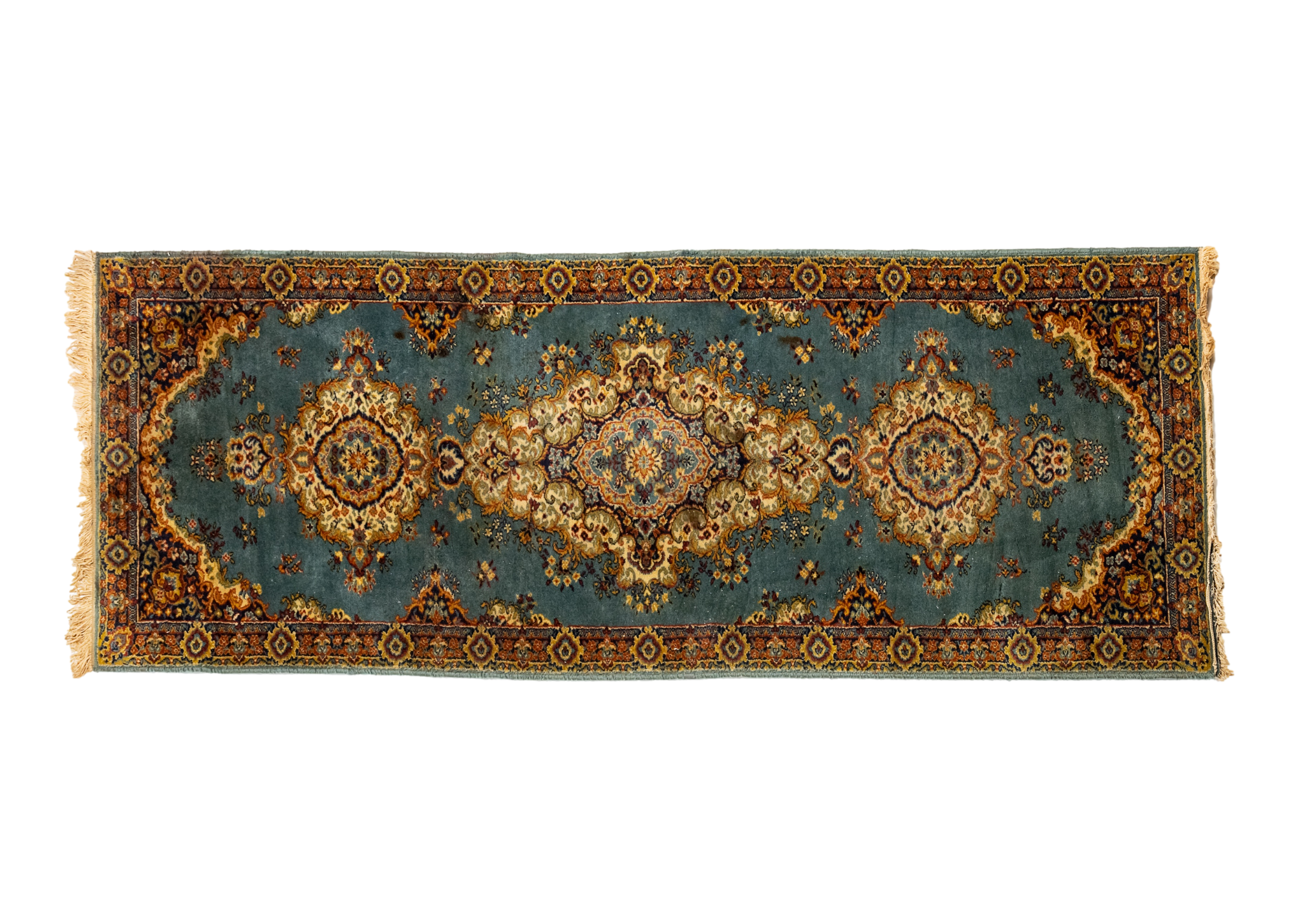 This beauty boasts a gorgeous pattern with slate blue, rust and cream hues. Perfect for any lounge or bar area or ceremony aisle. Event image by Marcie Gates Photography.