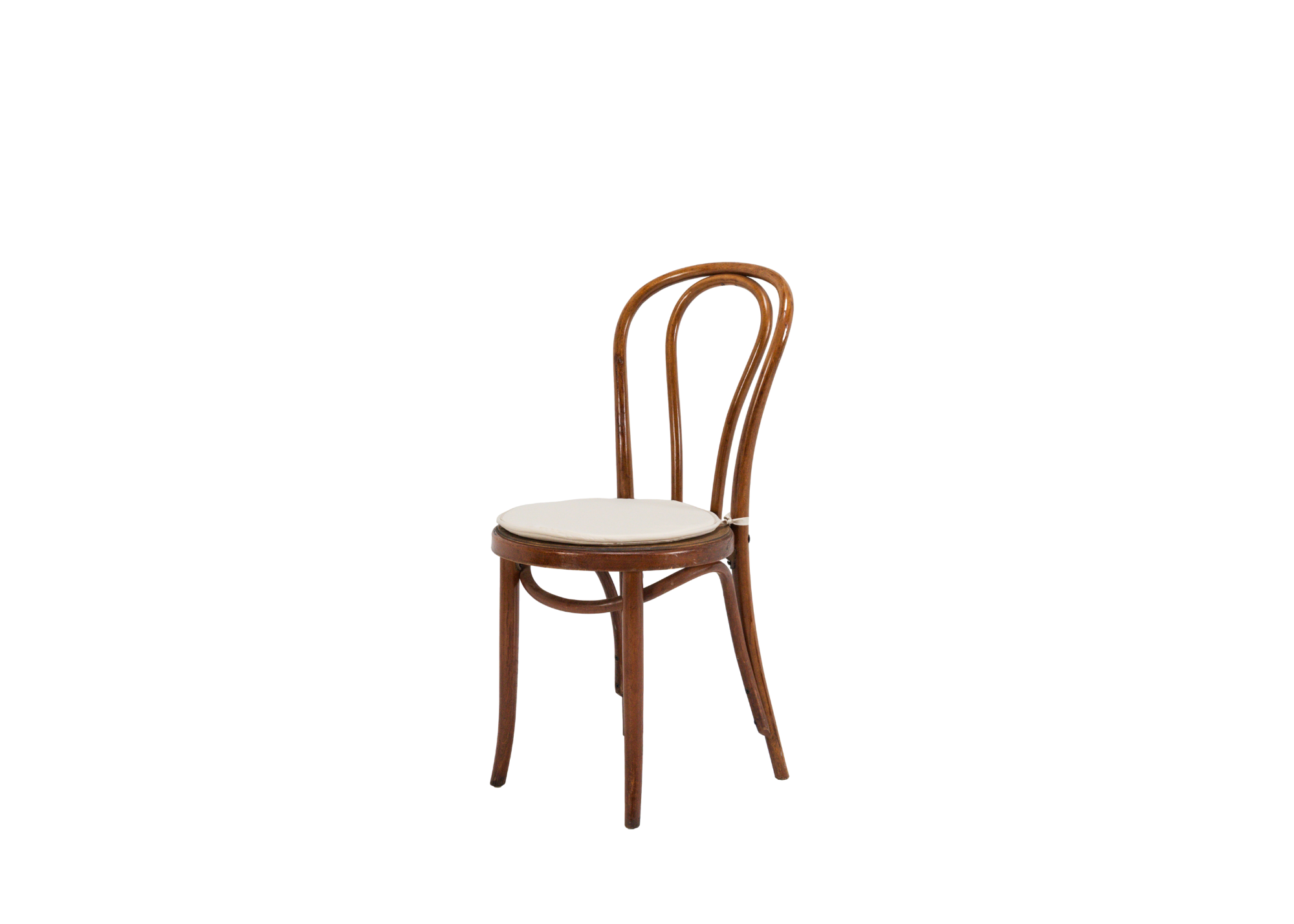 Vintage wooden Bentwood style chairs with neutral cushion perfect for ceremony and dining seating.