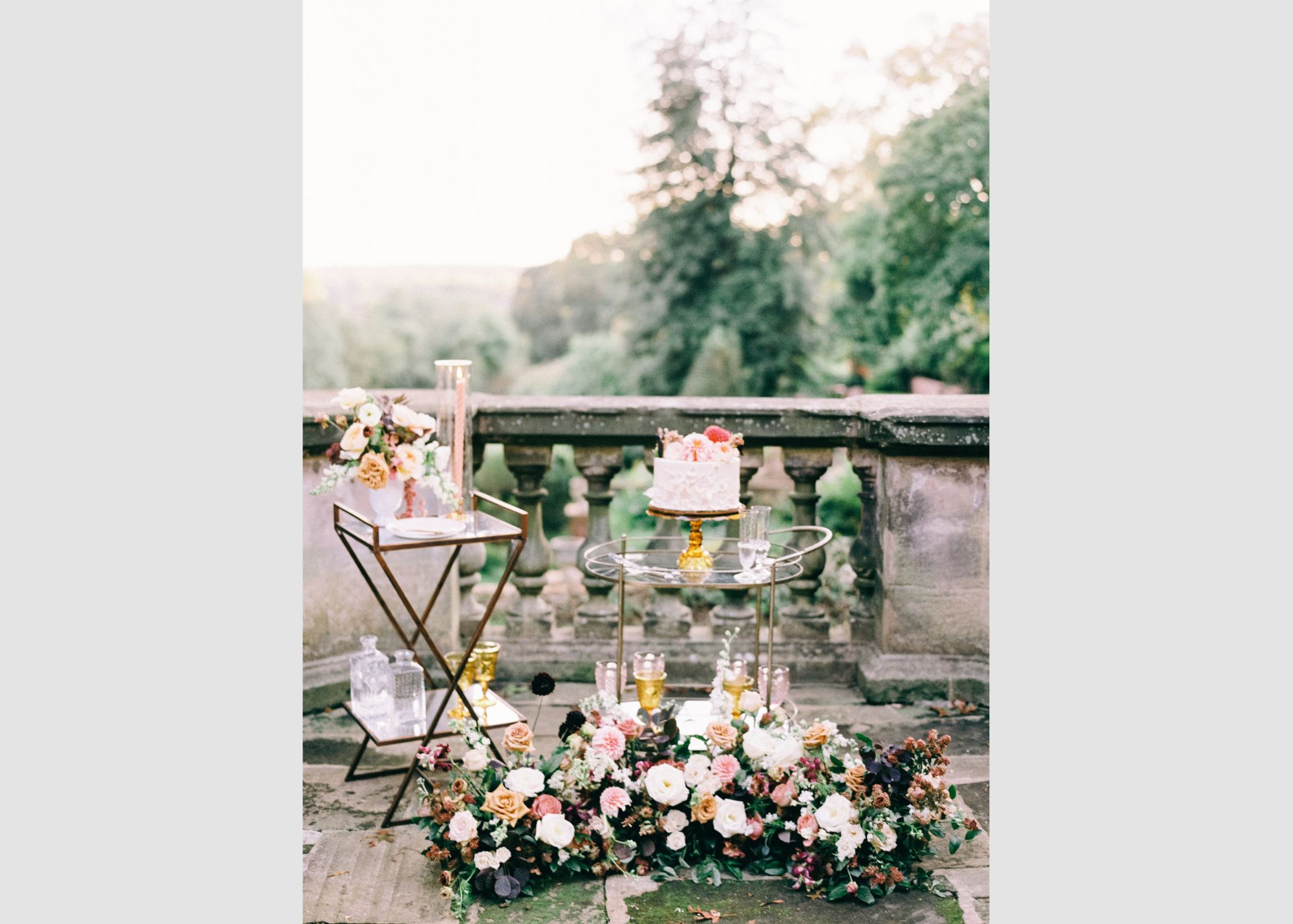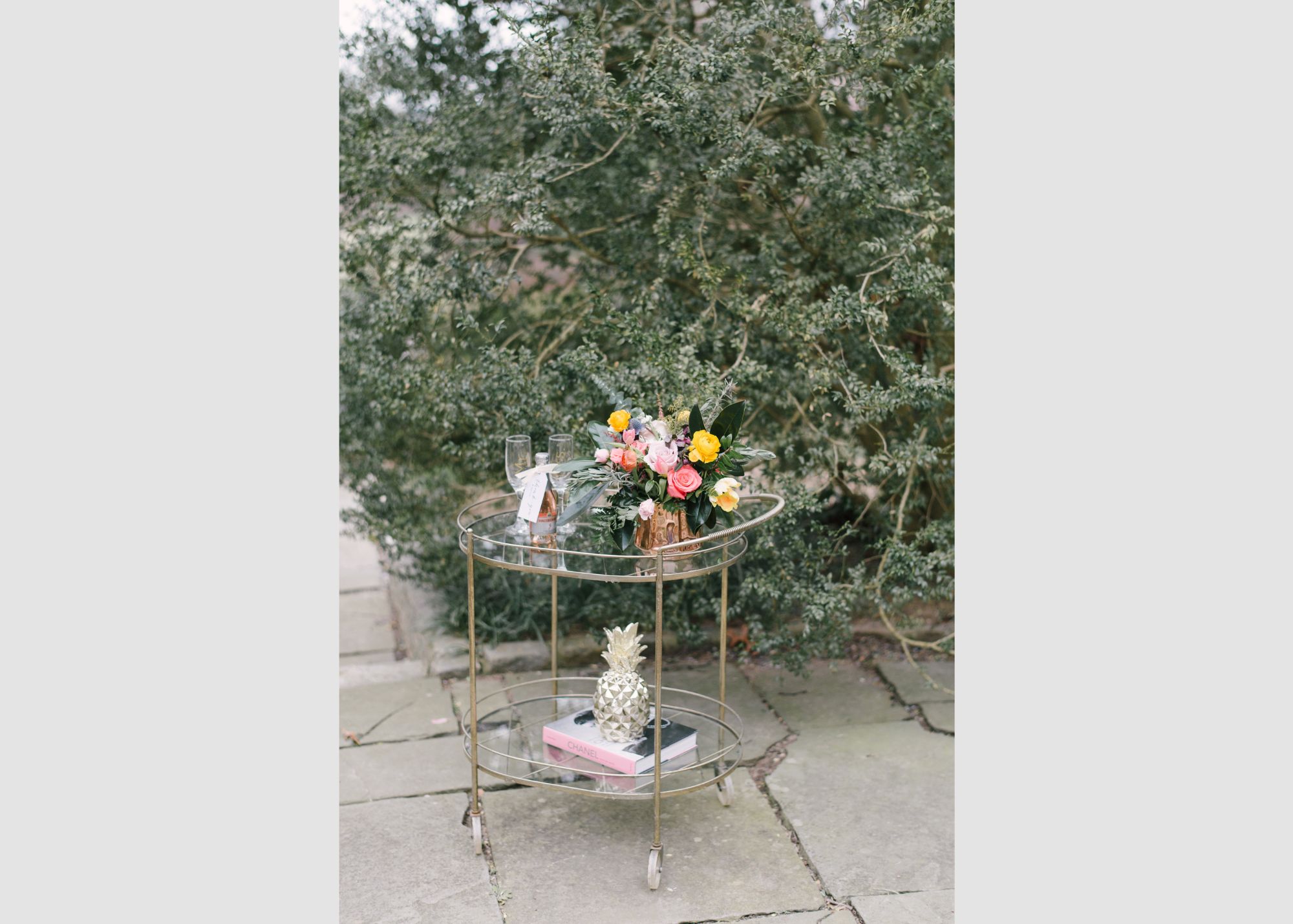 One of our favorite finds! This beautiful brass and glass bar cart is such a fun piece! With working wheels and pretty brass detailing on the glass trays, its perfect for any party, shower, or photo shoot! Event images by