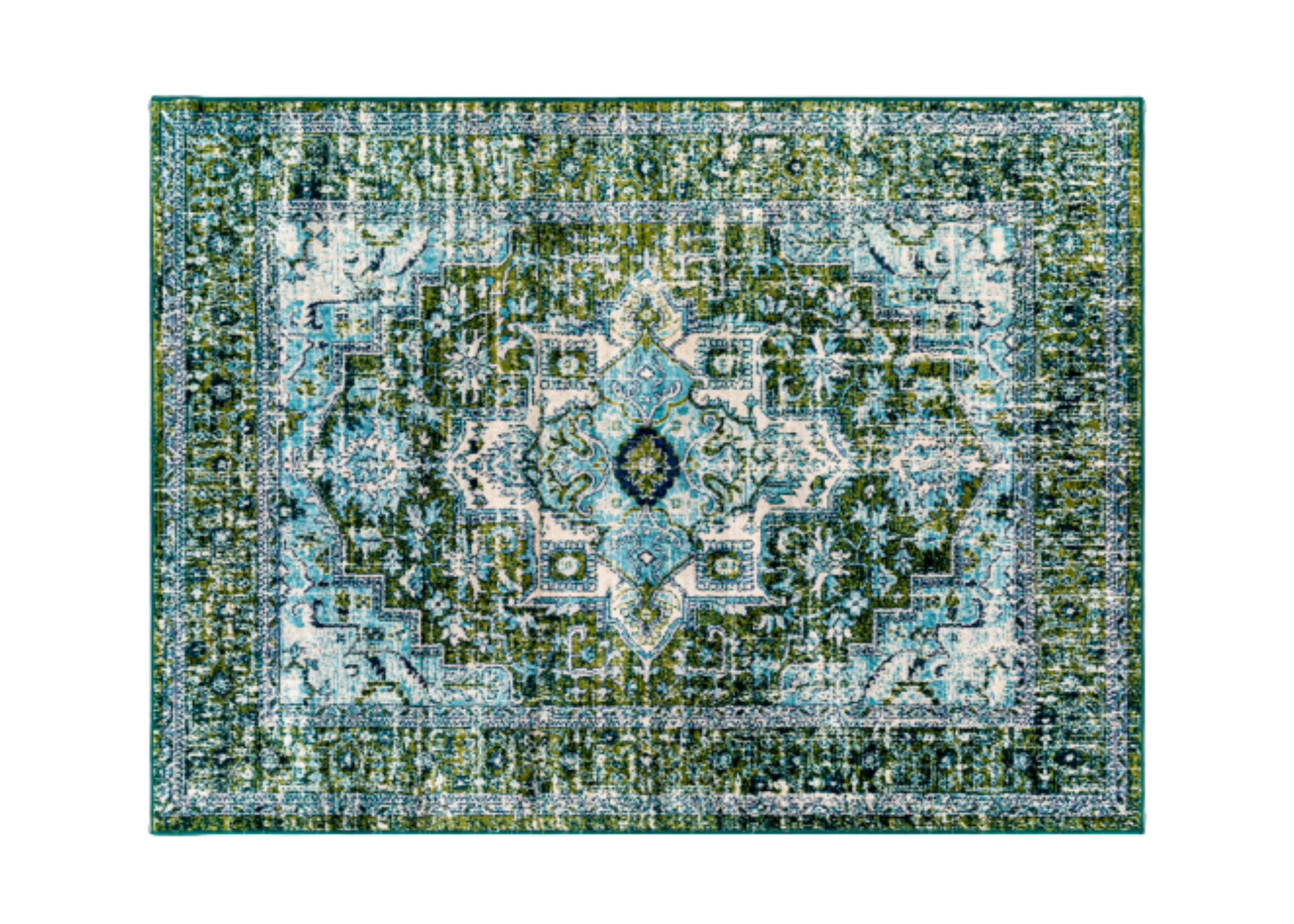 This lovely rug features gorgeous greens and eye catching blues. Perfect for event lounges or home staging!