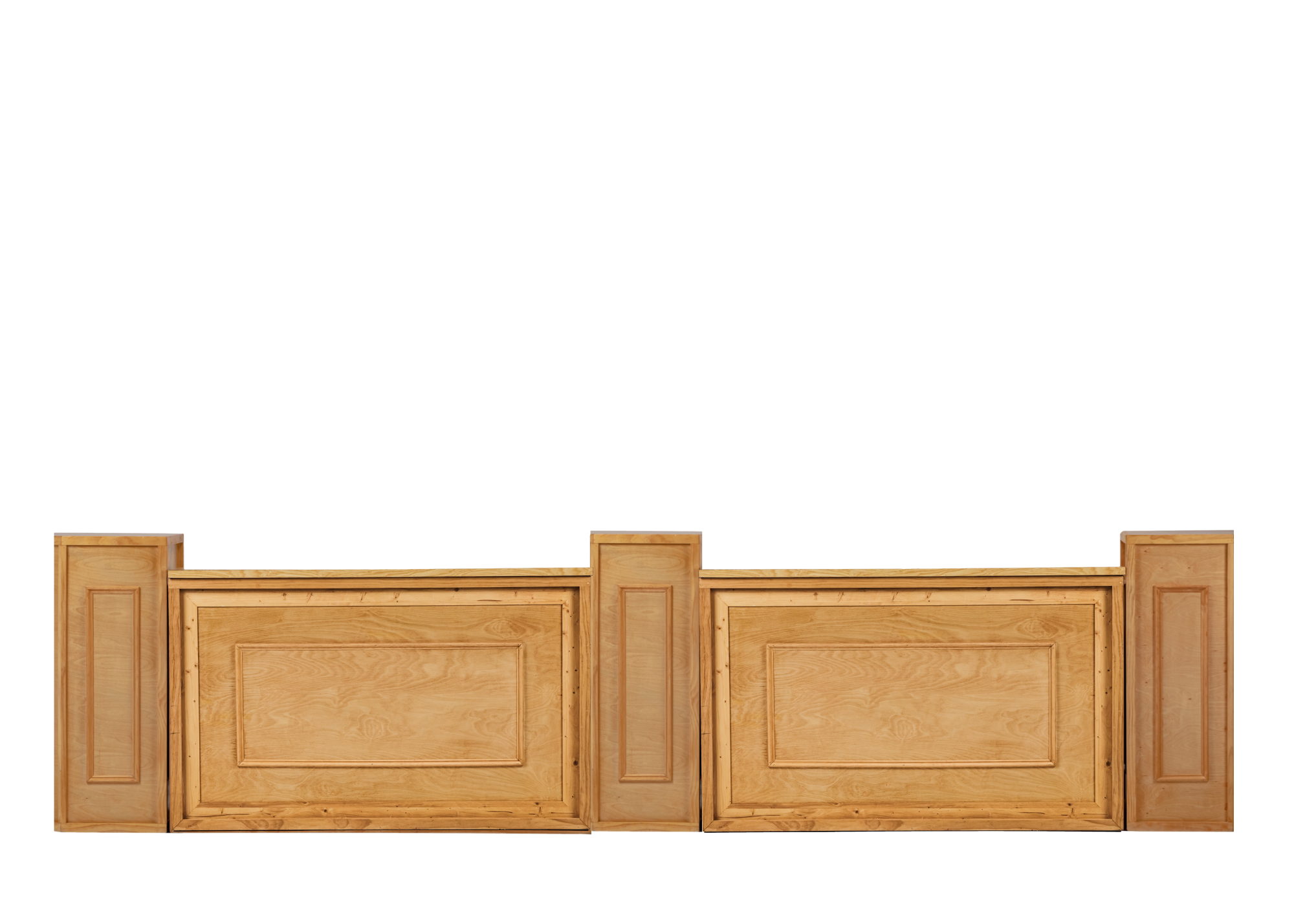 This stunning double light wood estate bar is sure to make a big statement at your next event. Flanked by light wood estate columns for additional height and can hold floral arrangements! These bars can be customized with other shadowbox bar inserts to match your style!