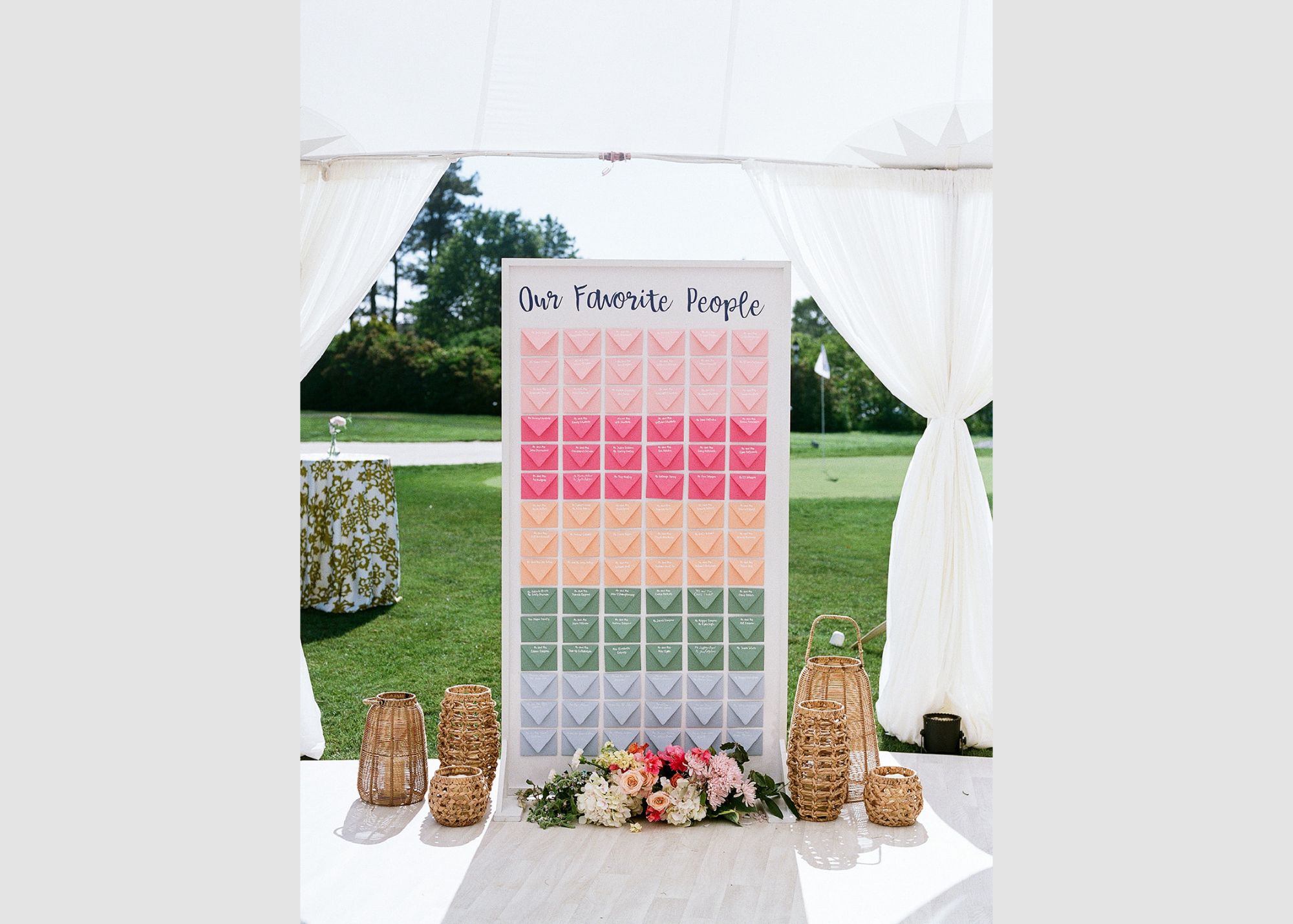 This simple and versatile panel is free standing and a fantastic option for signage at any type of event! The face of this piece is finished with acrylic making it perfect for vinyl lettering for welcome signs, menus, and seating charts! Event images by