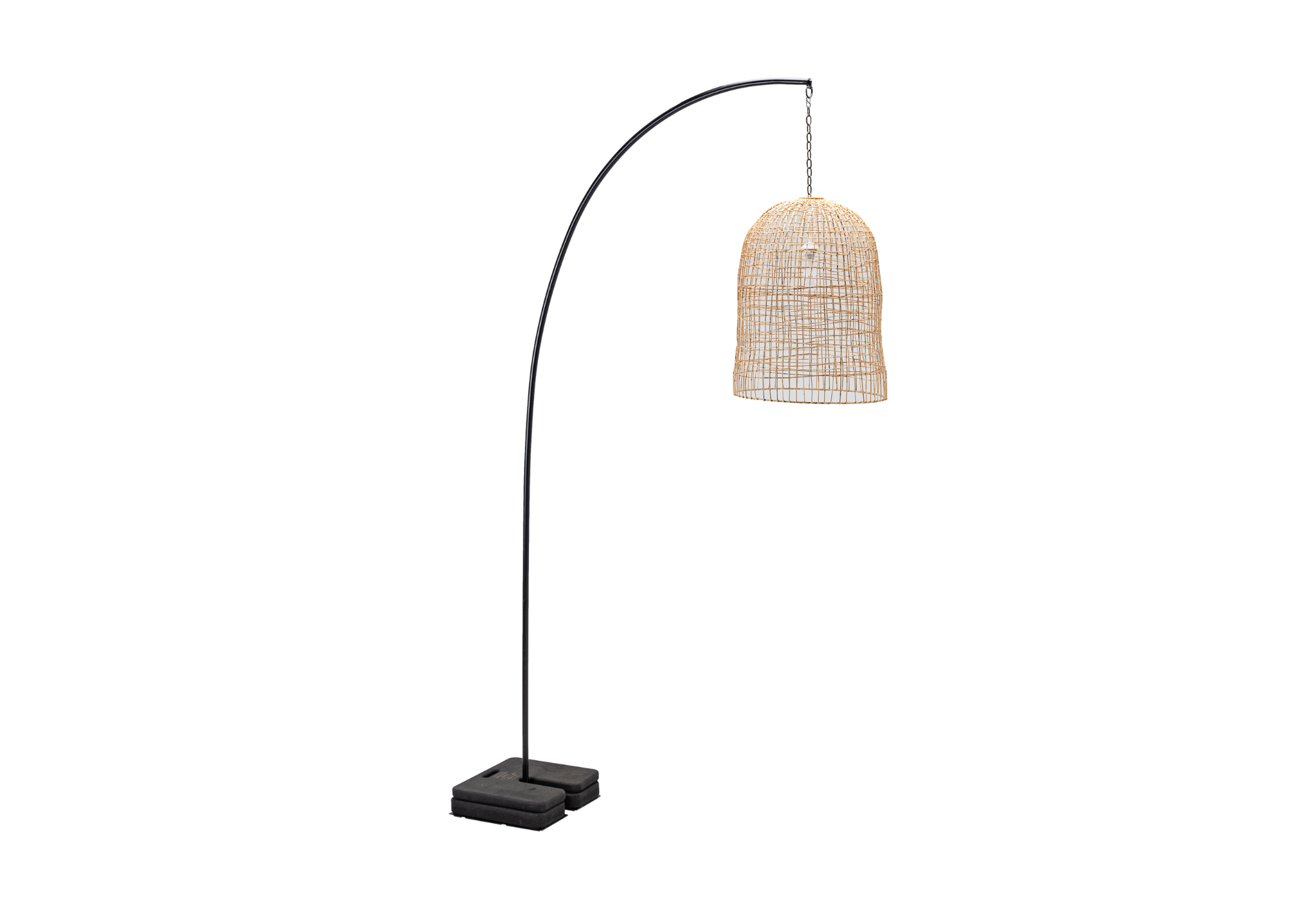 Freestanding Pendant Stand with Large Rattan Chandelier