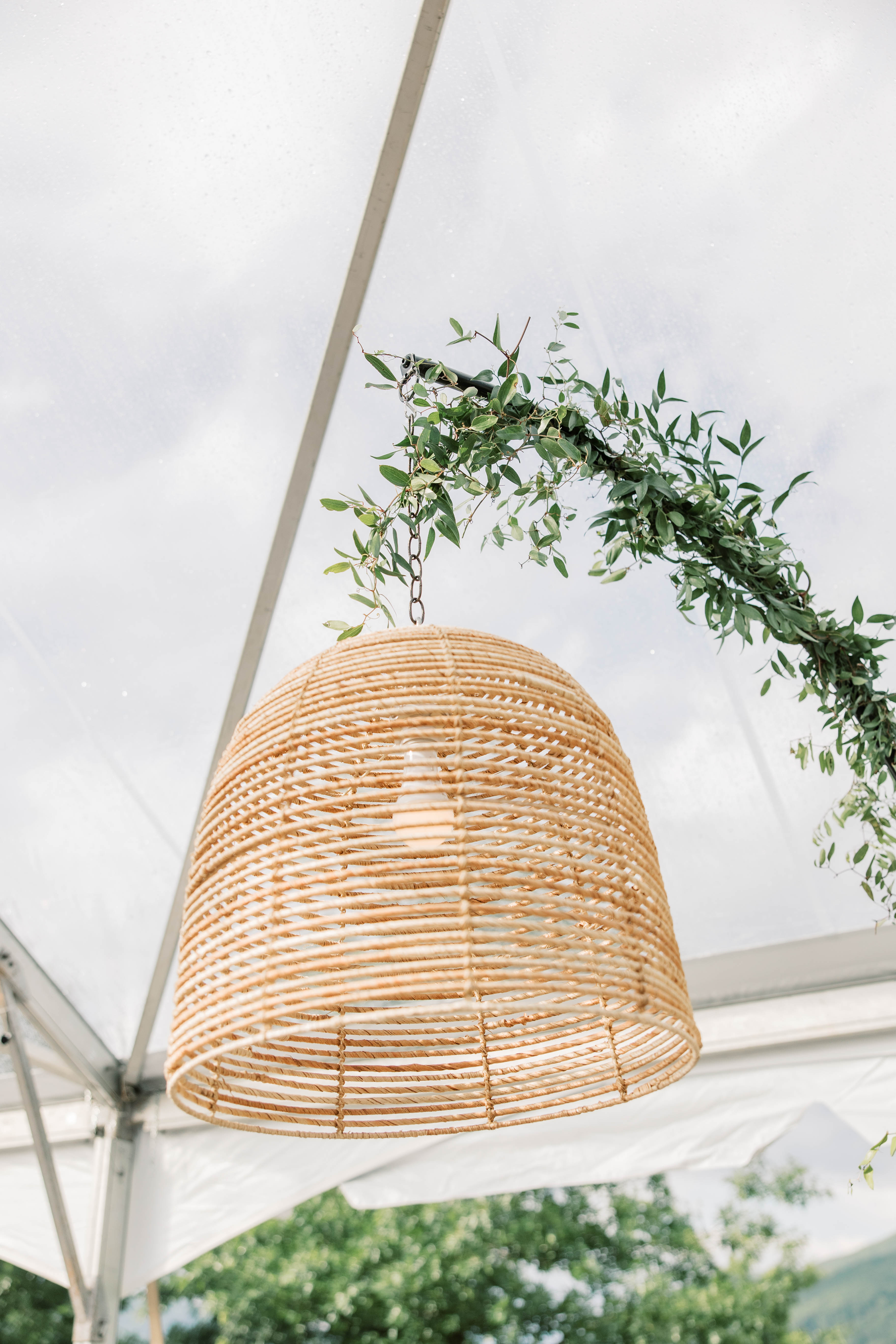 Description: This Freestanding Pendant Stand is a custom build that beautifully showcases our Large Rattan Chandelier! Perfect for lighting over your bar, wedding aisle, or dinner tables! Event images by Natalie Jayne Photography and Peper Love Photography.