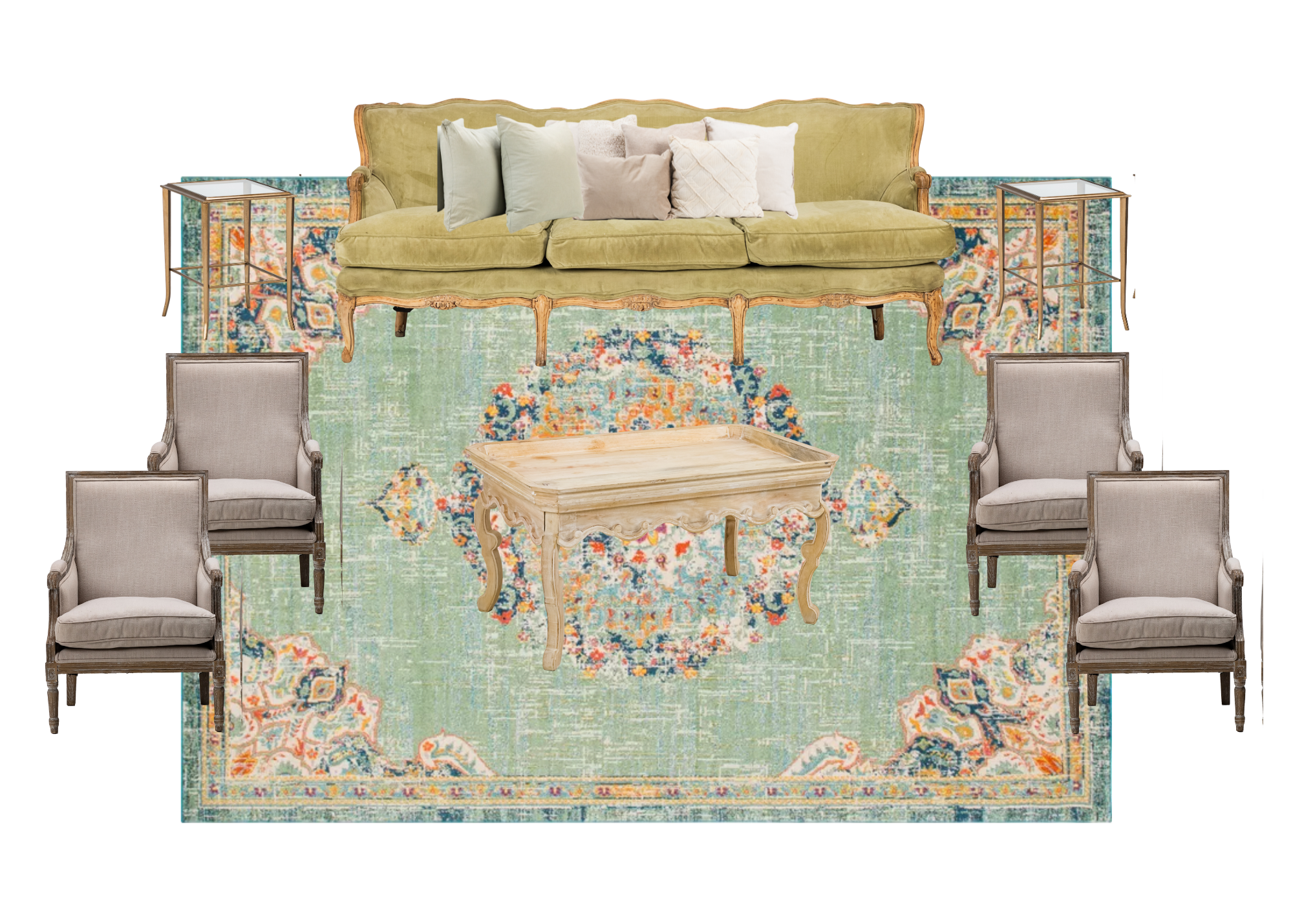 A traditional lounge featuring gorgeous neutrals and lovely greens!