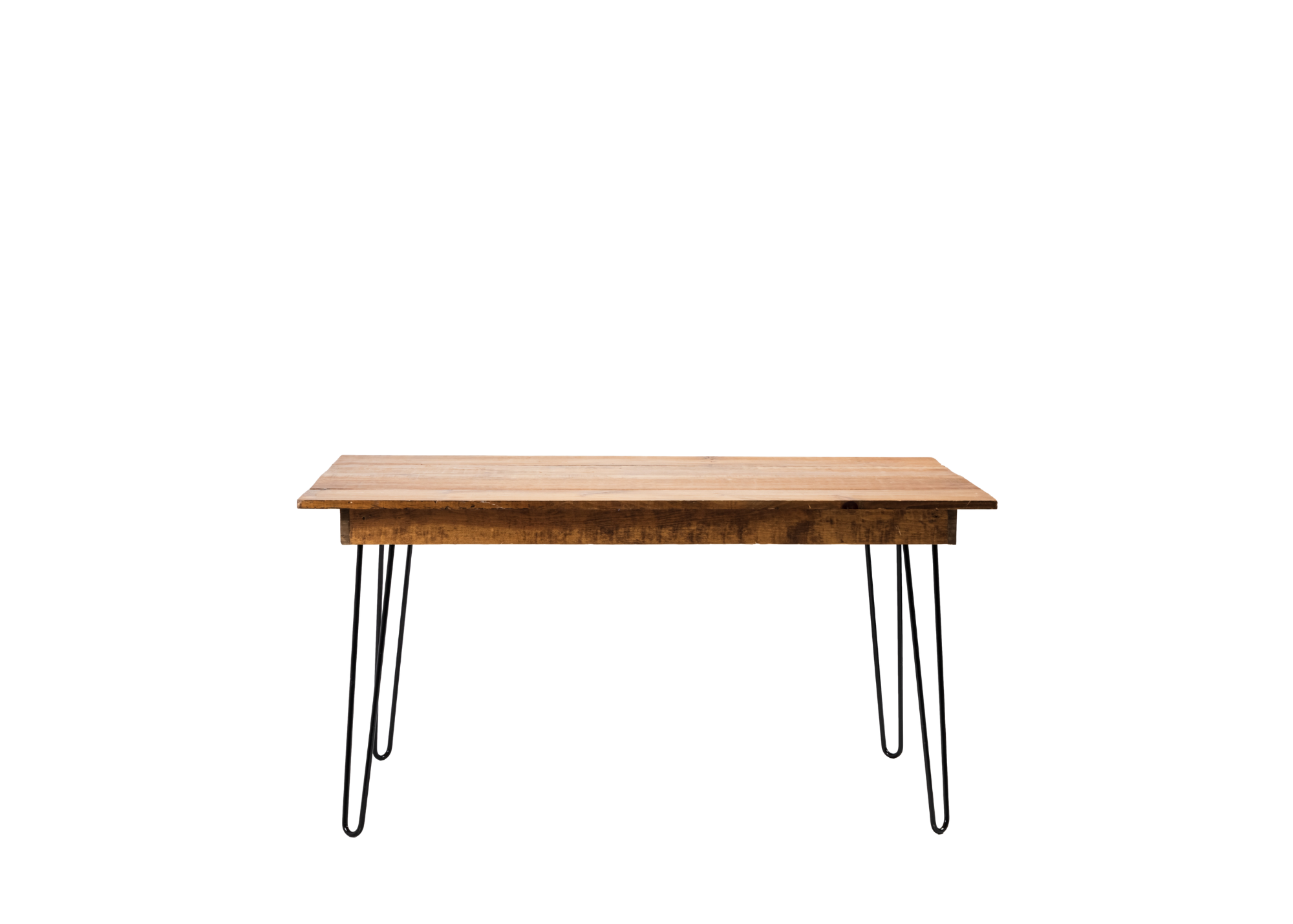 A modern take on the traditional Farm Table. The hand-crafted wooden table-top is the smaller version of it's dining table counterpart. This table is fit for sweetheart seating, cake displays, & welcome tables! Event image by