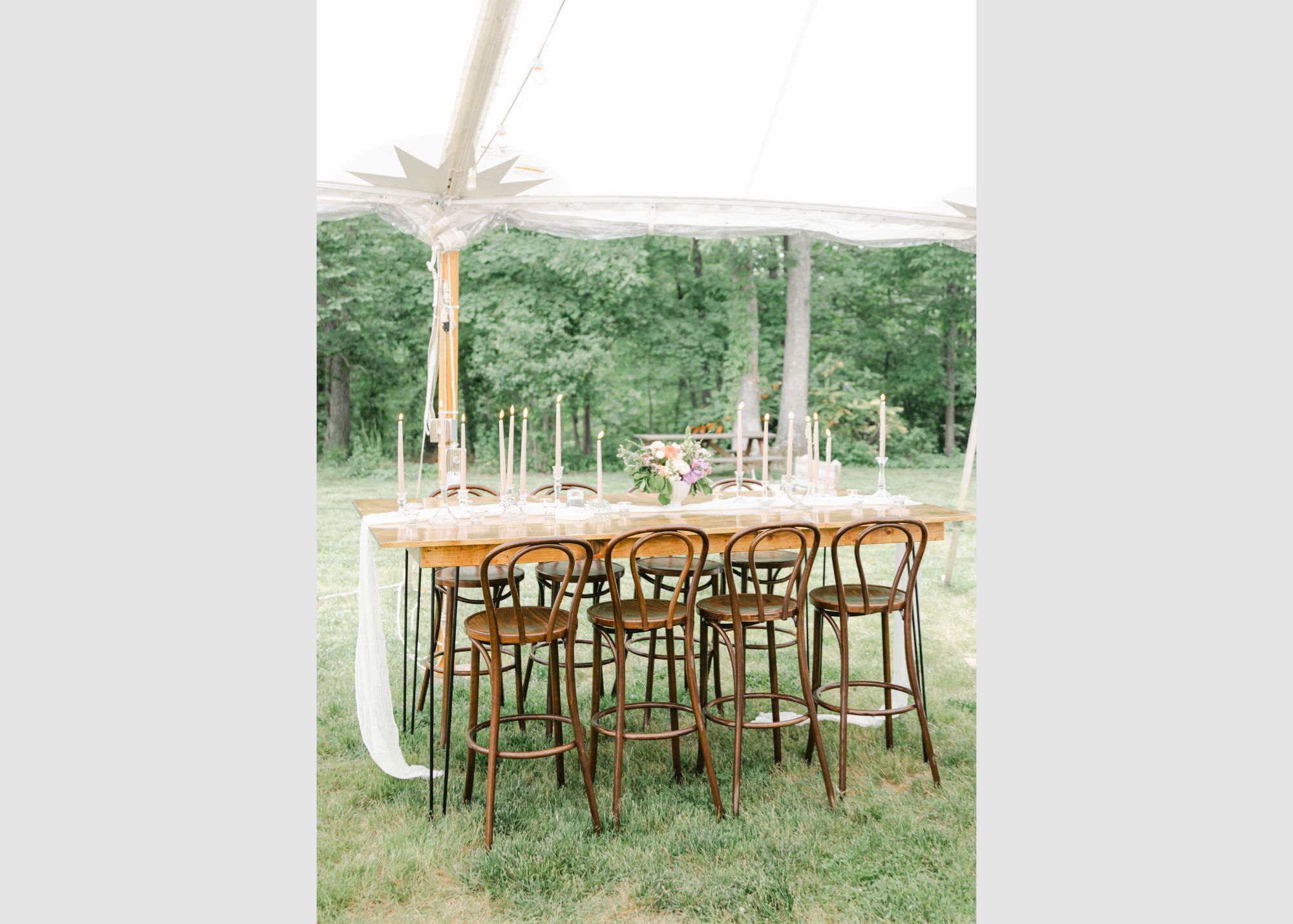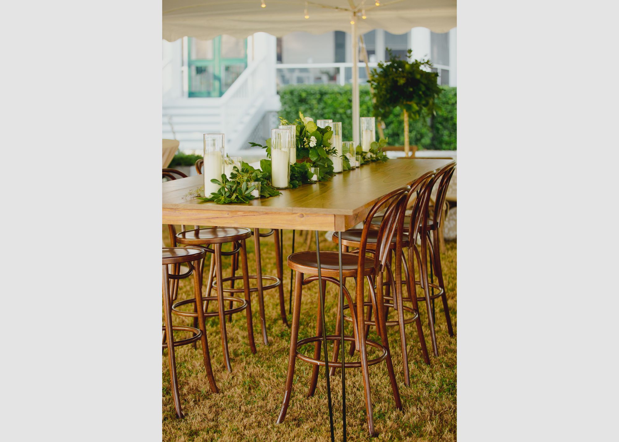 A bar height take on it's dining table counterpart! Modern design meets traditional Farm Table. The hand-crafted wooden table-top pairs perfectly with its sleek and industrial metal hairpin legs. Event images by