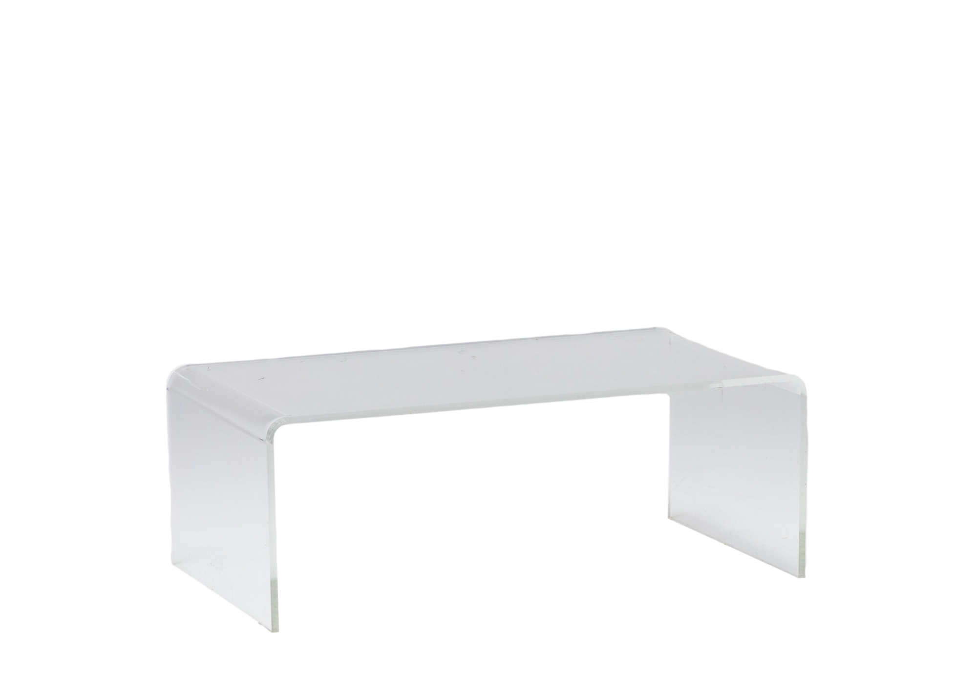 Modern rectangular clear acrylic coffee table. Easy to move and has a perfect clean chic look for lounge areas!