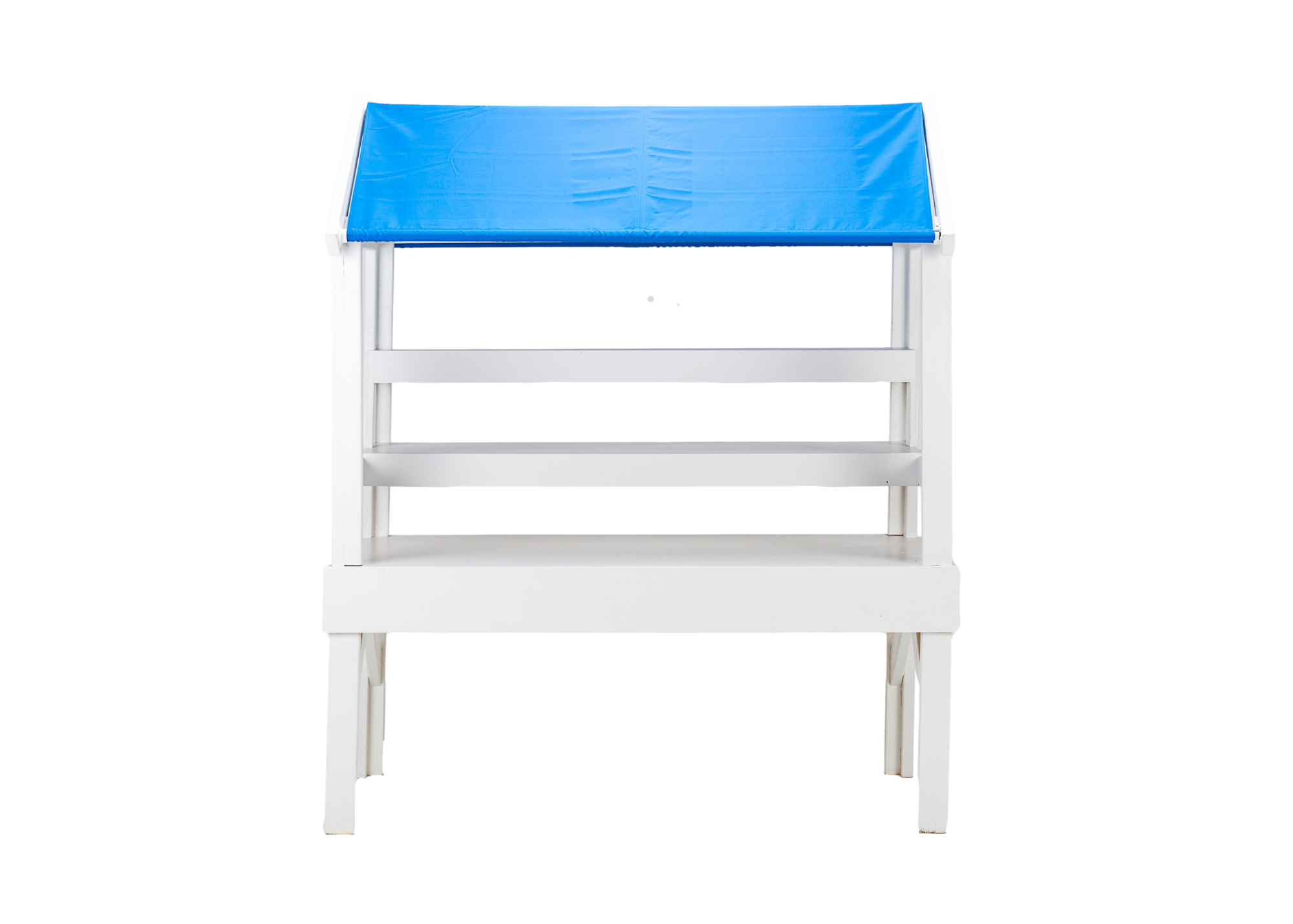 We are absolutely in love with this custom built cart! With a classic blue awning this piece is so fun and versatile! Makes a perfect display for wedding or party favors, desserts, hors d'oeuvres, florals or really anything your heart can imagine! Custom fabric colors/patterns available on request!