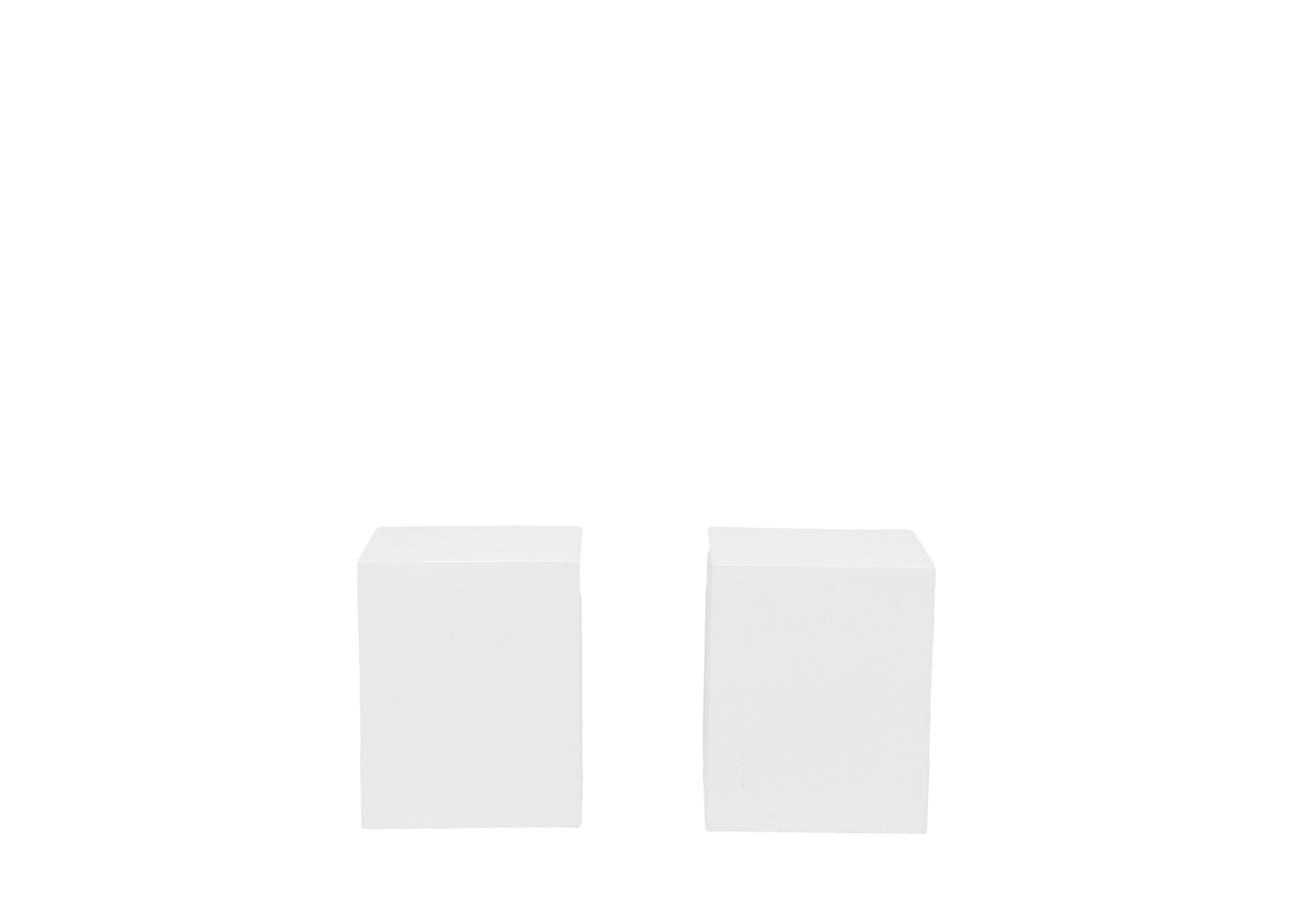 Custom built wooden pedestals painted white. Perfect for floral displays, ceremony accents, trade shows or corporate events.