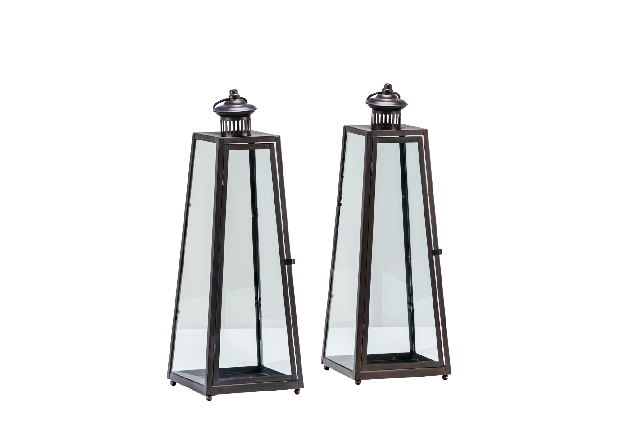 Metals lanterns in black. Great outdoor lighting option, decor piece or floral vessel.