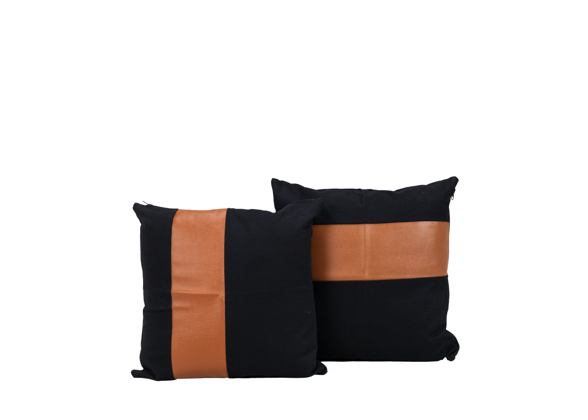 Pair of Black & Leather Stripe Pillows